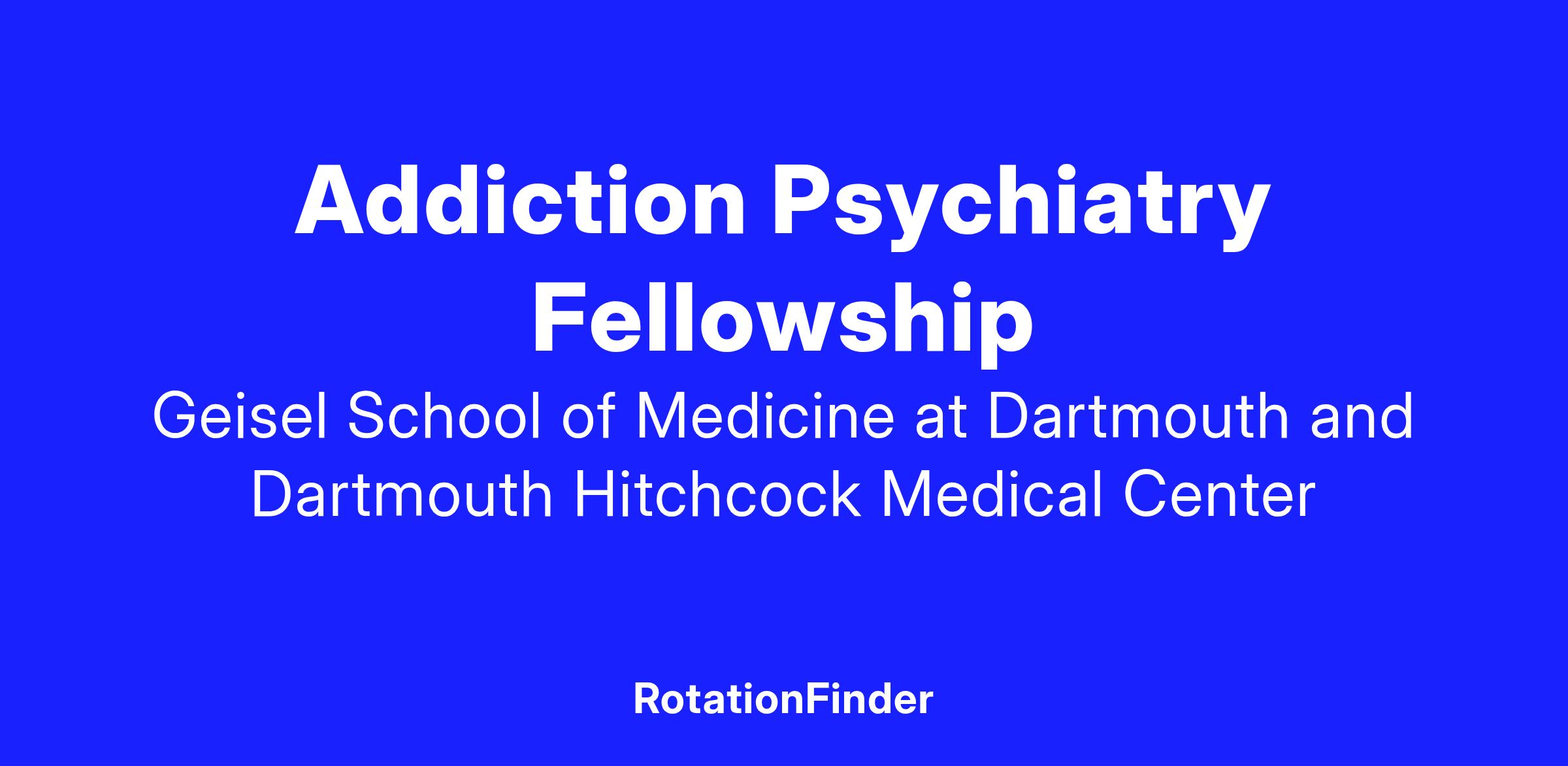 The program includes scholarly activity and numerous opportunities to be involved in the research of addiction, including the ability to collaborate with the Northeast Node of the Clinical Trials Network. Patients seen in the program cover a range of socioeconomic diversity. There is also substantial opportunity to teach psychiatric residents and Dartmouth medical students.