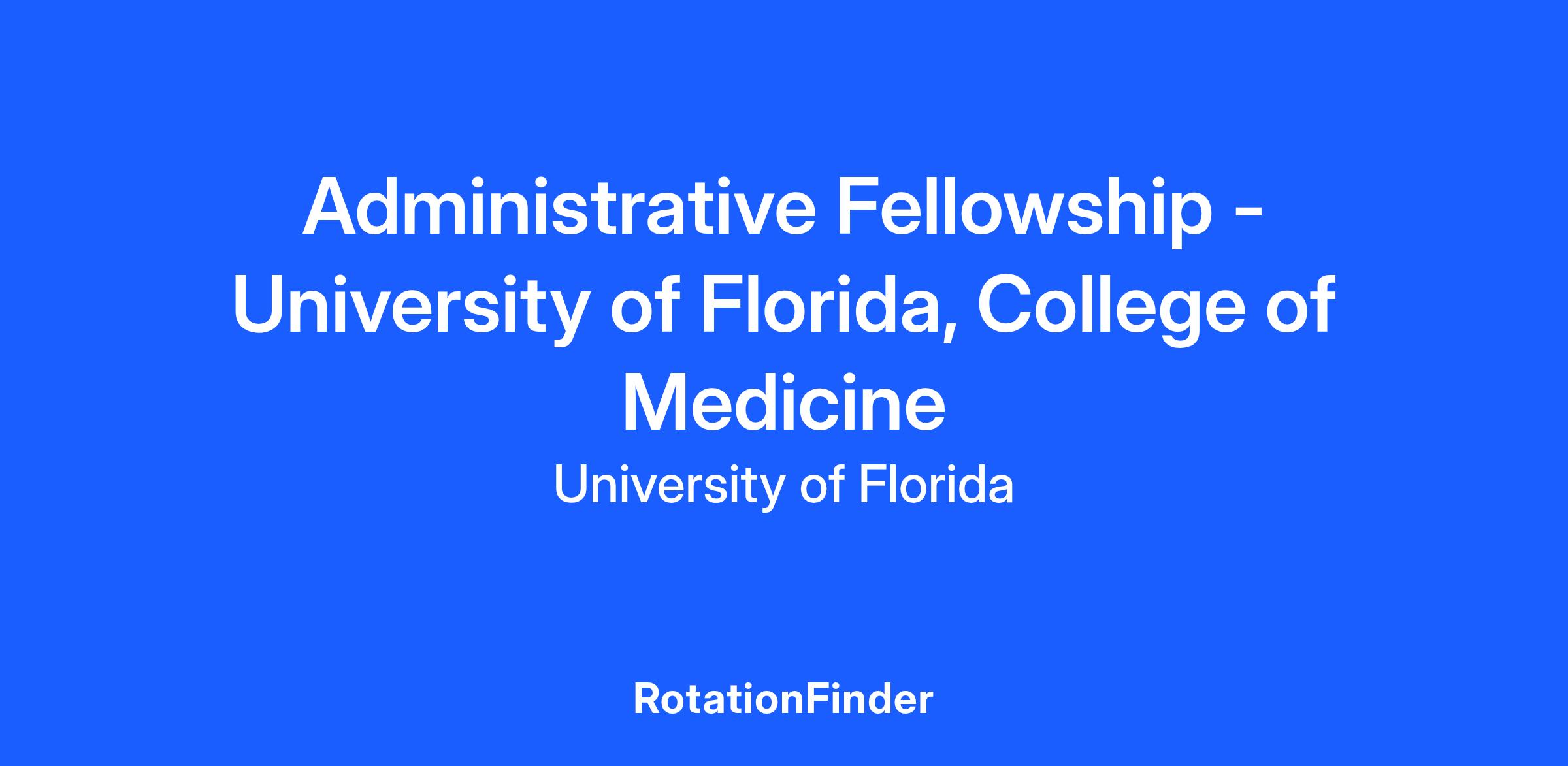 The College of Medicine at the University of Florida welcomes candidates to apply for an Administrative Fellowship position. This will be a two-year, full-time paid position that provides high impact and practical learning experience for future healthcare executives, with opportunities to gain an in-depth understanding of healthcare operations in an academic medical center environment. This position is expected to start in June 2026. Upcoming spring master's program graduates are welcome to apply! Fellows take part in hands-on, operationally, and financially focused projects, and participate in various leadership activities that nurture professional growth. Fellows are exposed to high- level strategic planning and other health system functions, including finance, budgeting, operations, facilities management, data analysis, information technology, marketing, and human resources. The Administrative Fellow reports to the Associate Director of Operations, while the College of Medicine Chief Financial Officer serves as Fellowship Preceptors. With collaboration and input from the Fellow, this cohort will develop plans for the duration of the fellowship, as well as for the Fellow’s career opportunities. The Fellow will have an opportunity to observe system-level meetings and conferences throughout the Fellowship.. There will have ample opportunities to develop and enhance their leadership skills in personnel and project management. They will be expected to develop robust technical skills by working on analyses of clinical, financial, workforce and other data. Additionally, fellows will take on a role in leading teams to accomplish tasks and projects. Their contribution will be essential in implementing novel solutions and modernizing the Dean’s Office F&A infrastructure. Responsibilities include: