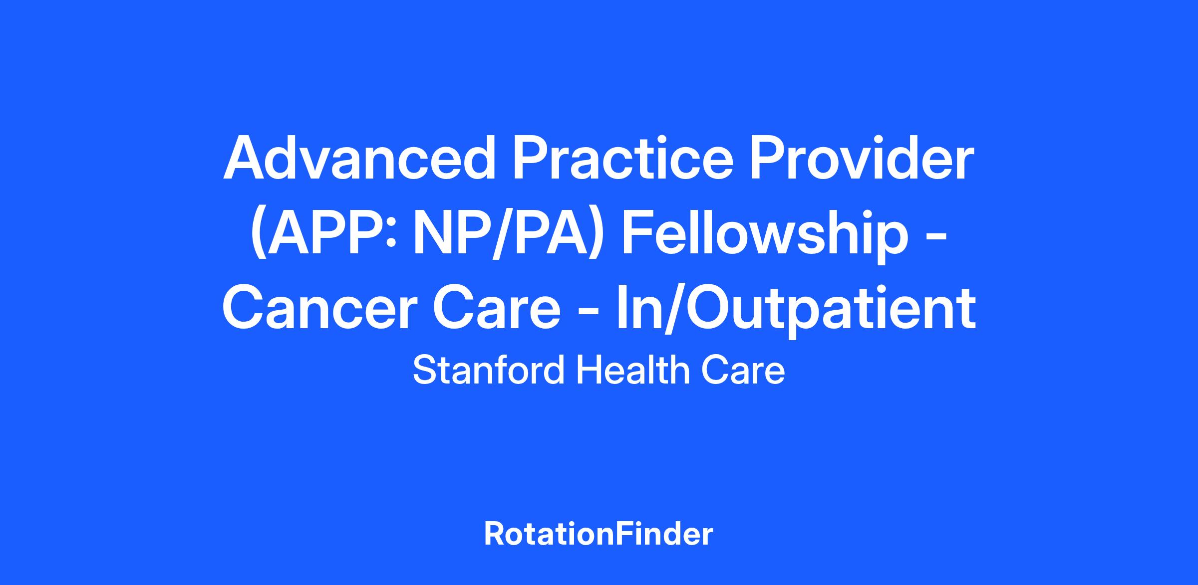 The Center for Advanced Practice at Stanford Health Care is accepting applications for the 2026-2027 Advanced Practice Provider (APP) Fellowship. The APP Fellowship Program prepares postgraduates in the core domains of transition to practice, professionalism and specialty competencies. The 12-month program includes didactic and practice-based learning in various settings. The clinical transition to practice program is for newly graduated APPs with less than one year of advanced practice experience. More information can be found at https://careers.stanfordhealthcare.org/us/en/advanced-practice-provider-fellowship.