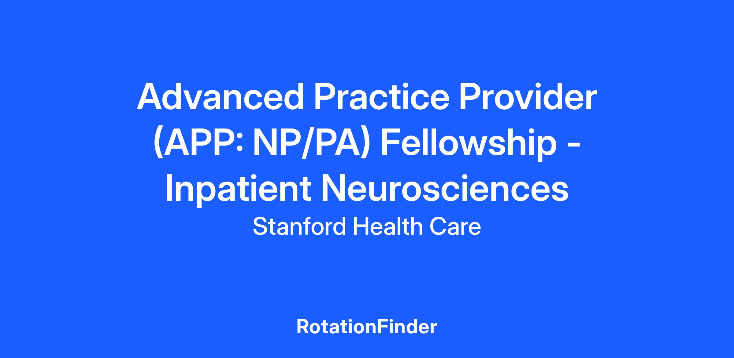 The Center for Advanced Practice at Stanford Health Care is accepting applications for the 2026-2027 Advanced Practice Provider (APP) Fellowship. The APP Fellowship Program prepares postgraduates in the core domains of transition to practice, professionalism and specialty competencies. The 12-month program includes didactic and practice-based learning in various settings. The clinical transition to practice program is for newly graduated APPs with less than one year of advanced practice experience. More information can be found at https://careers.stanfordhealthcare.org/us/en/advanced-practice-provider-fellowship.