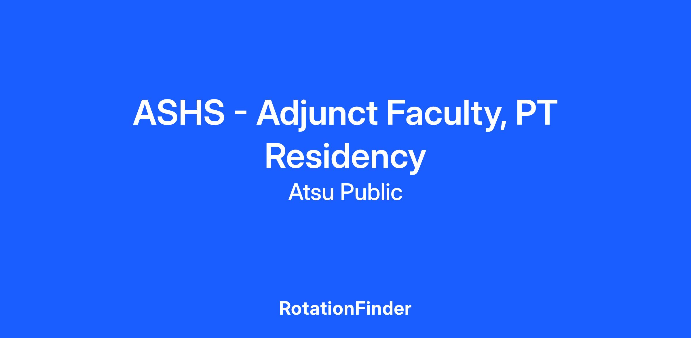 A.T. Still University's Arizona School of Health Sciences (ATSU-ASHS) seeks applications for non-exempt adjunct faculty in the neurologic physical therapy residency or in the orthopedic physical therapy residency. Must have the requisite experience and expertise to teach advanced practice concepts and skills. Individuals with the appropriate specialty certifications and experience are preferred.
