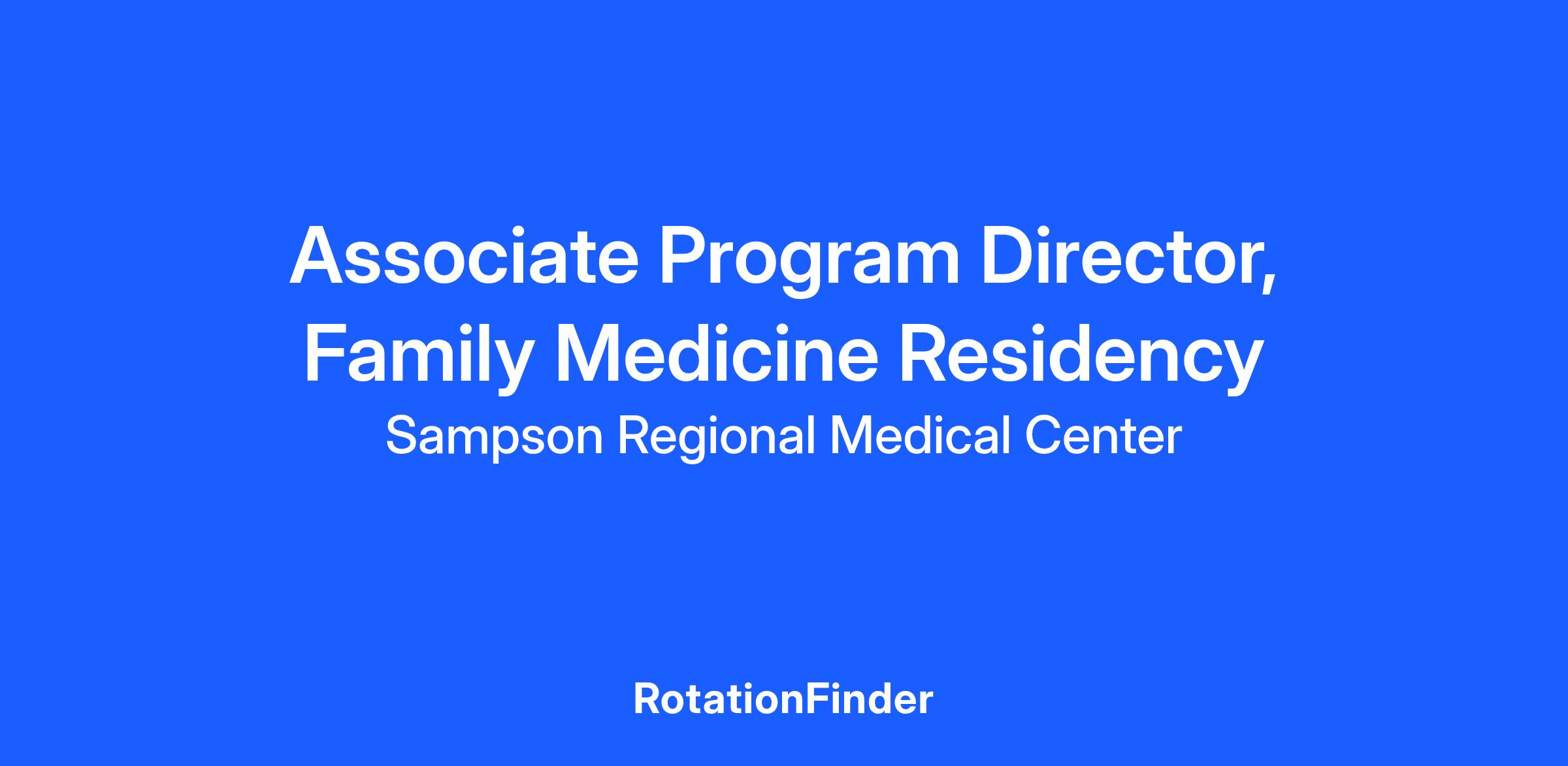 Sampson Regional Medical Center is seeking a board-certified Family Medicine Physician (MD or DO degree) to serve as the Associate Program Director of our Family Medicine Residency program. Join the mission to educate and prepare community-based physicians to care for rural populations while also providing outpatient care in our hospital-owned practice, Sampson Medical Group. We seek a skilled and experienced physician who maintains a strong focus and commitment to providing outstanding and compassionate care to all patients.
