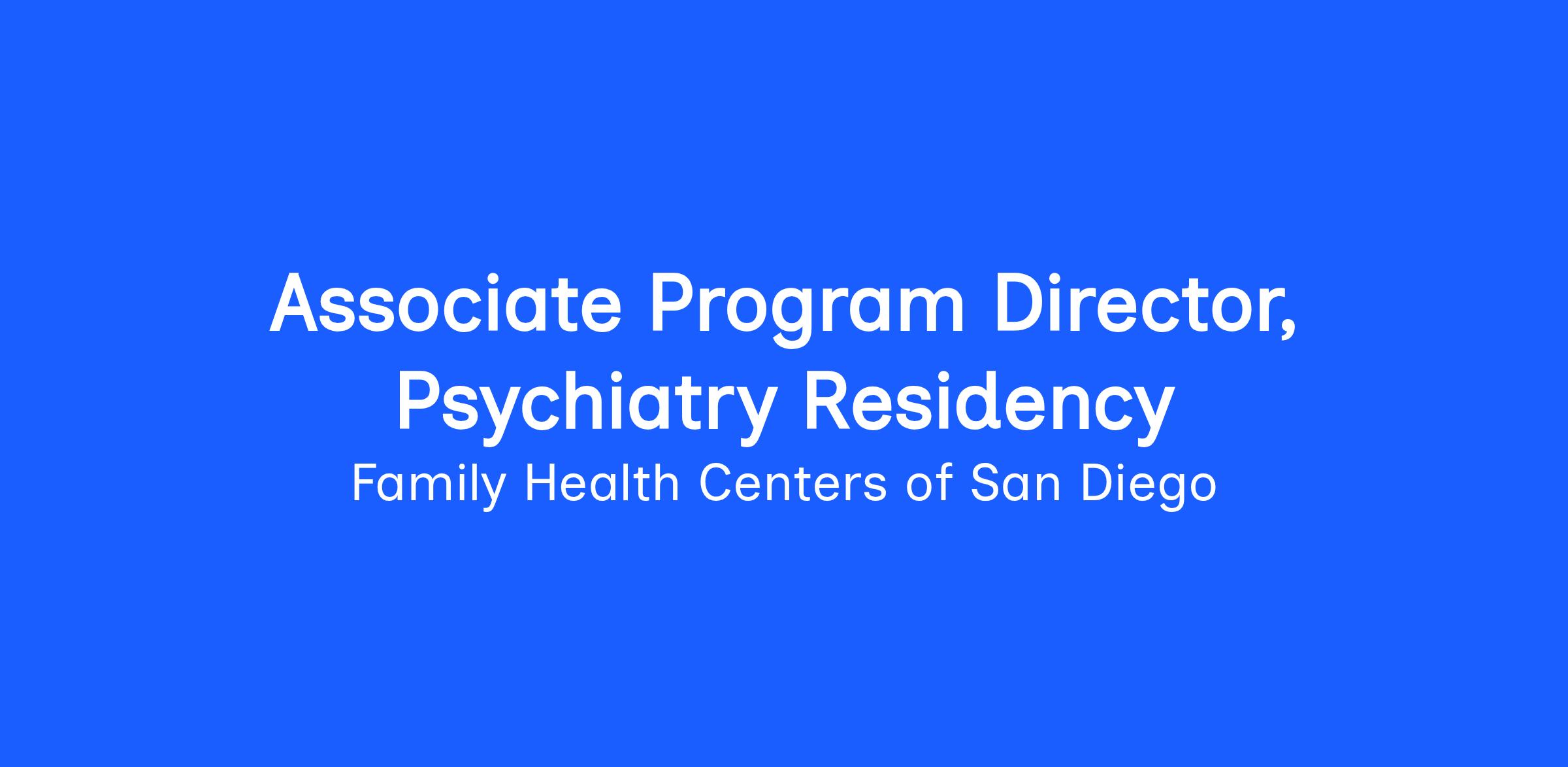 FHCSD is currently seeking an Associate Program Director for our Psychiatry Residency Program. Located in the City Heights neighborhood of San Diego, this new community-based training program offers psychiatric education and hands-on experience with training sites throughout San Diego County. Our program’s mission is to recruit, train, and retain a diverse group of psychiatry physicians with a passion for providing caring, affordable, high-quality psychiatric care to the underserved. This is a crucial leadership role and a driving force to expanding access to qualify mental health care to underserved populations in local community.