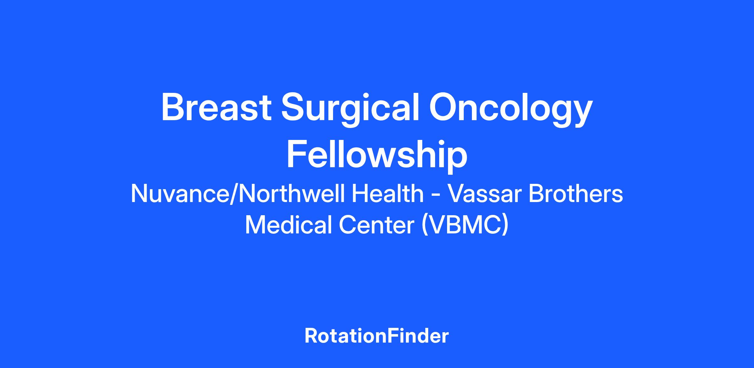 The Breast Surgical Oncology Fellowship Program at Vassar Brothers Medical Center (VBMC) will give you access to leaders in breast surgical oncology, the latest technology for breast surgery and a diverse patient population.
