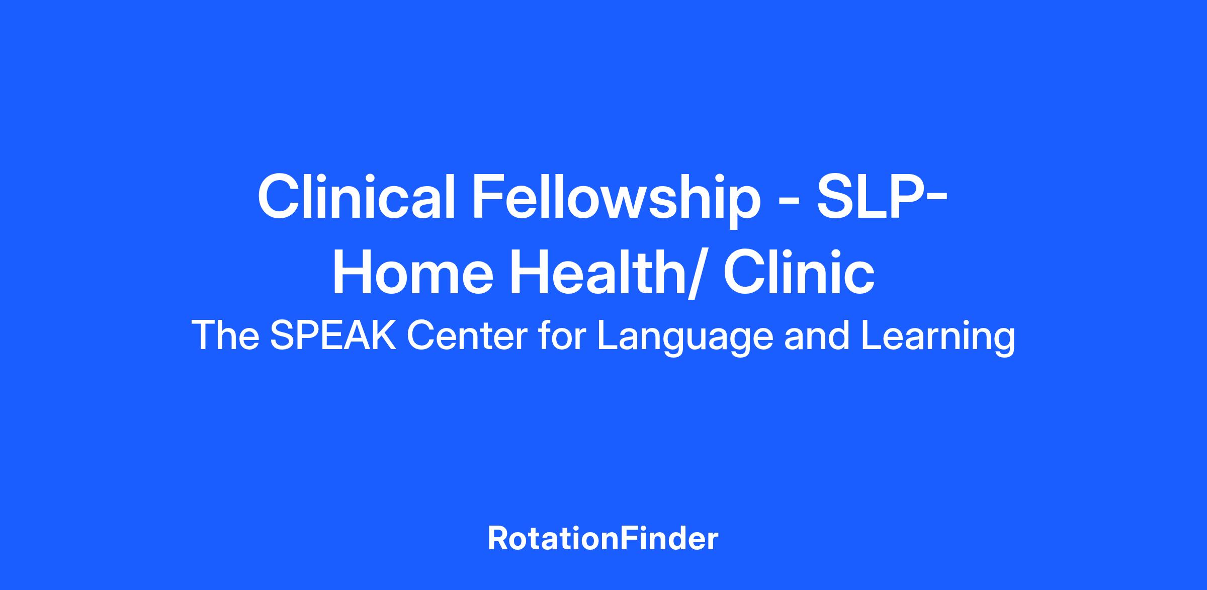Job Posting: Speech Language Pathologist (SLP) Clinical Fellowship (CF) - Home Health/ Clinic