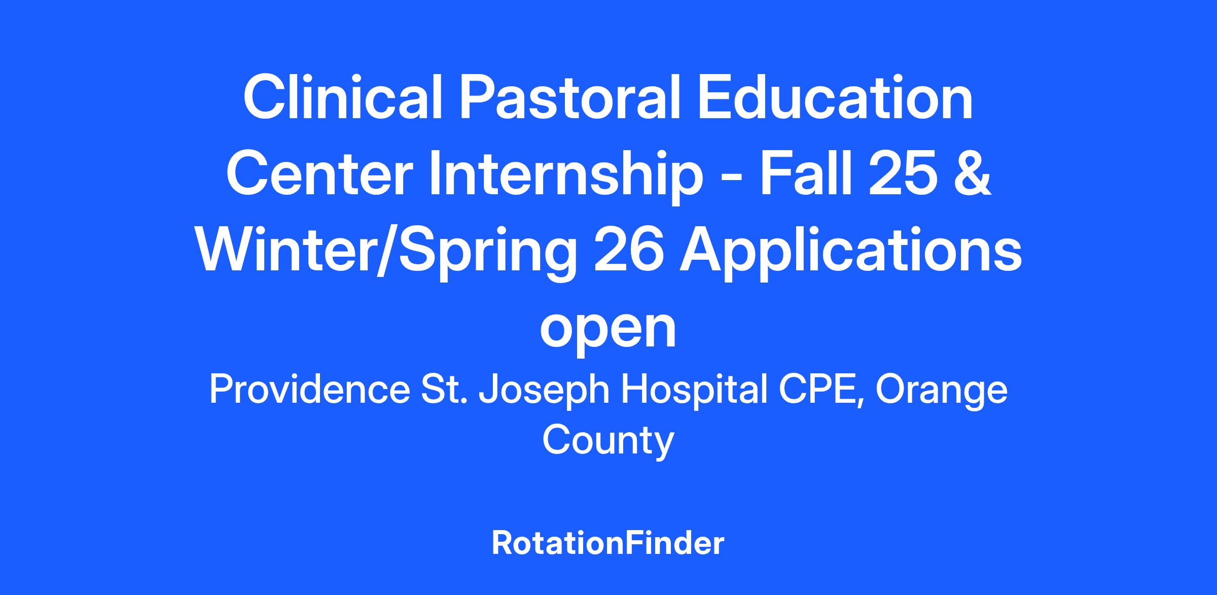 St. Joseph Hospital CPE Program offers three CPE internship units annually that are designed for seminary students, clergy, and laity of all faiths. We offer two extended part-time CPE units each year. One is held in the fall/winter and the other in winter/spring. Both are 18-weeks long and ask for approximately 25 hours per week commitment. We also offer a full-time summer CPE unit each year. This is 11-weeks long and asks for a 40-hour per week commitment. CPE interns are not salaried or benefited St. Joseph Health employees. The fall/winter CPE internship unit begins in September and ends in January.