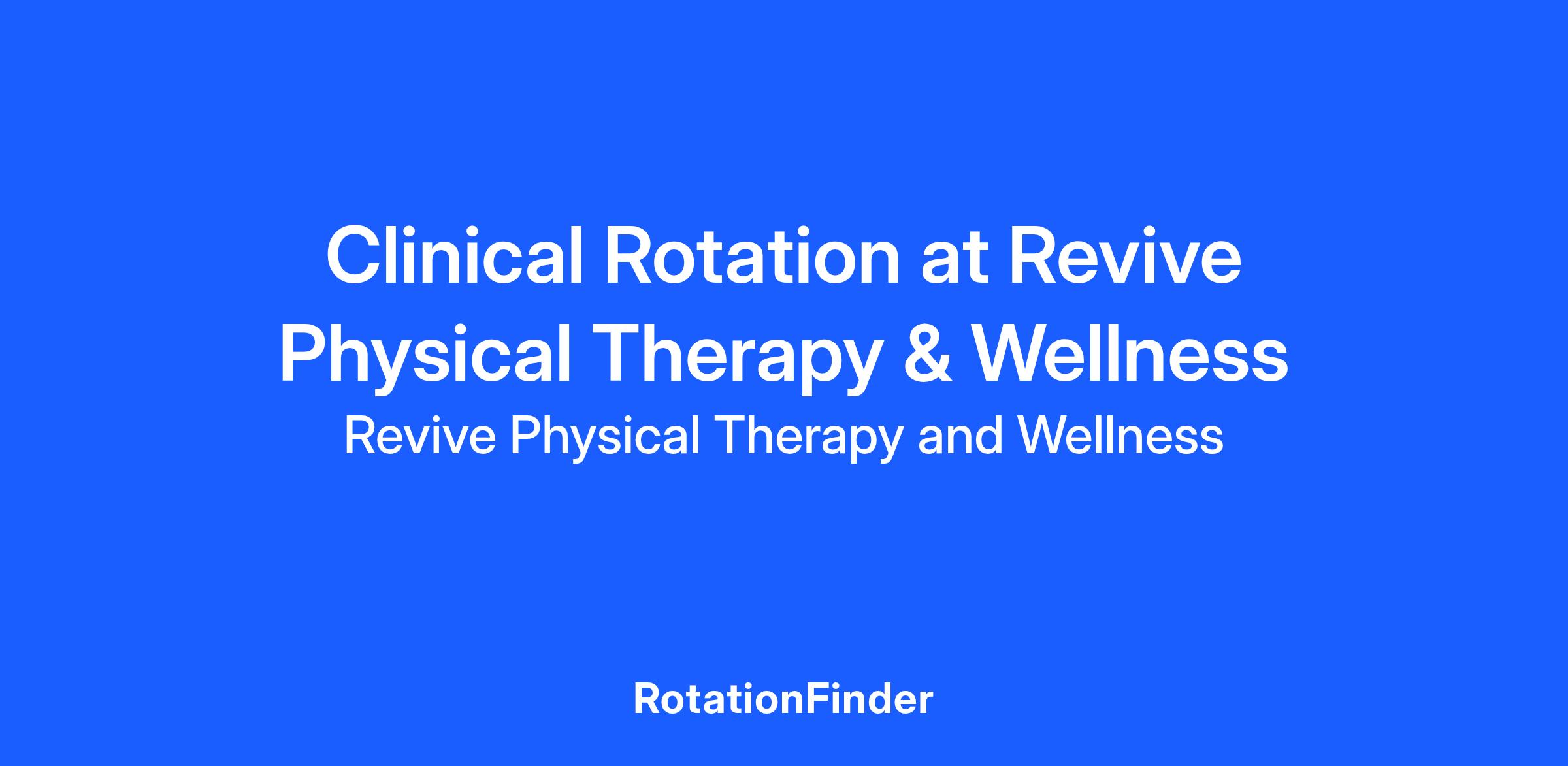 At Revive Physical Therapy & Wellness, we pride ourselves on fostering a teaching and collaborative environment where students who have a passion for outpatient orthopedics and the ability to build great patient rapport can thrive.