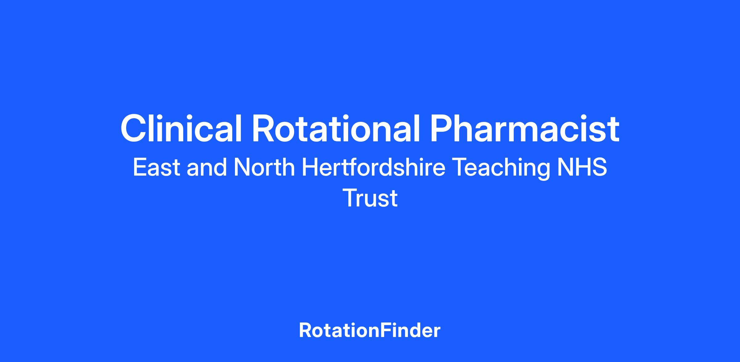 This is a fantastic opportunity to join an award winning and expanding clinical pharmacy team and be part of our exciting future at East and North Hertfordshire NHS Teaching Trust!