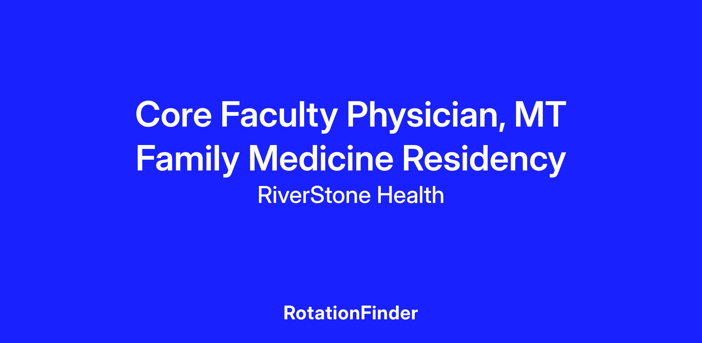 The Montana Family Medicine Residency at RiverStone Health is expanding and seeks a core Faculty Physician to teach the next generation of family physicians.