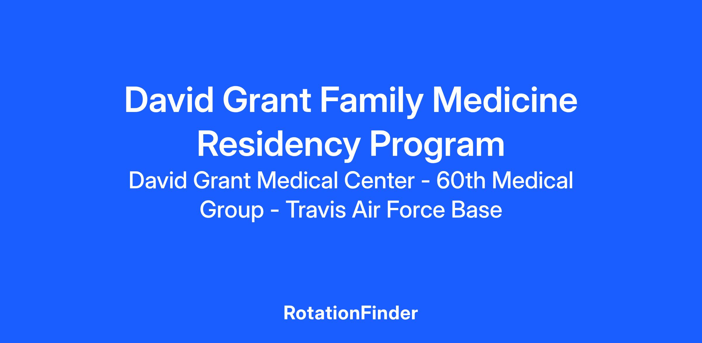 The David Grant Family Medicine Residency program offers military graduate medical education training focused on clinical excellence, the provision of safe patient care, a scholarly environment and military unique curriculum.