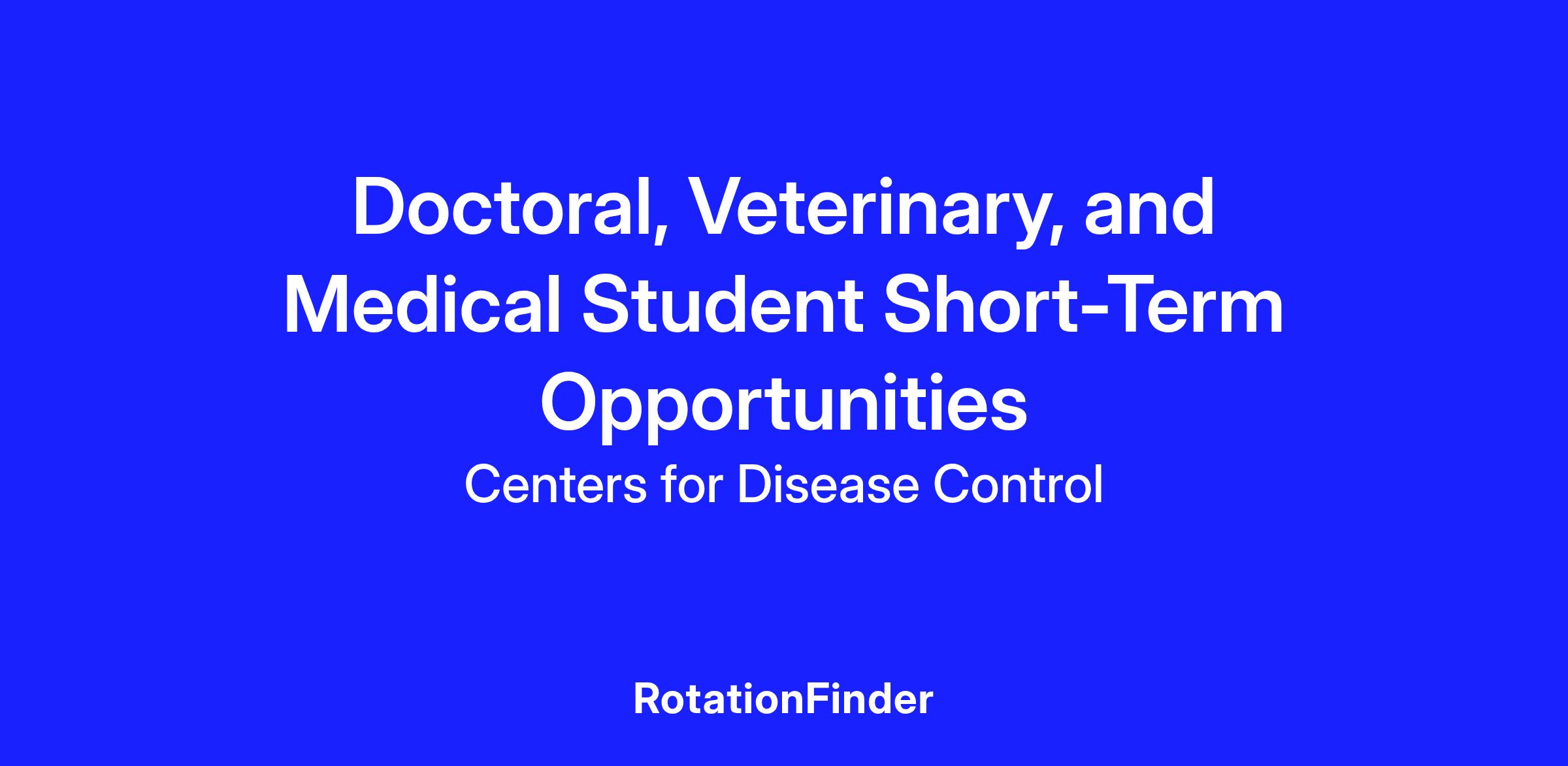 | Epidemiology Elective Program | Hands on experience working with CDC experts with an introduction to applied epidemiology, public health, and global health. Open To Length/Salary Application Period |