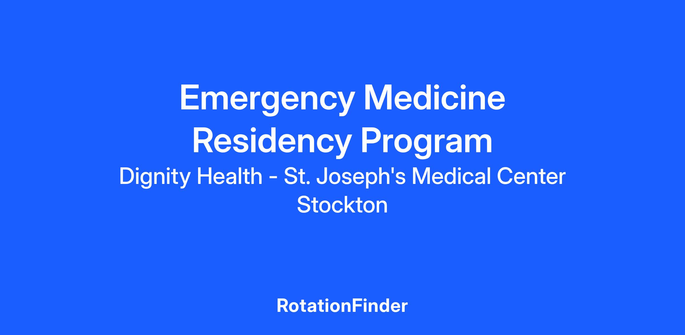 Our main training site is St. Joseph’s Medical Center in Stockton, CA. St. Joseph’s Medical Center is the largest hospital in the Dignity Health network, with the busiest Emergency Department in San Joaquin County by volume. The Emergency Department sees a diverse mix of patients, including a large pediatric volume. Acuity is very high, with an admission rate of over 17.7% including a 13% ICU admission rate. The ED is an active STEMI and Stroke receiving center.