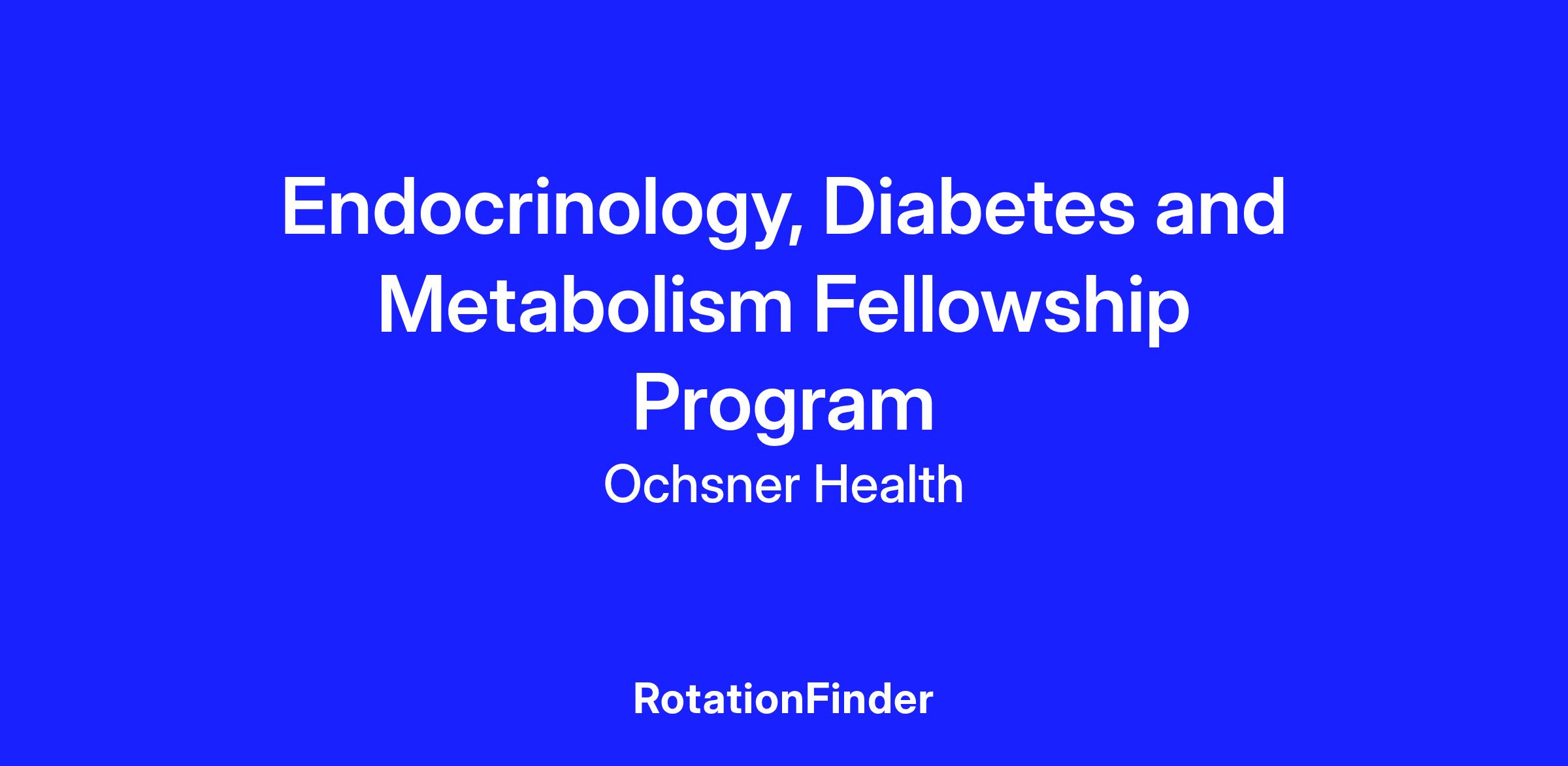 The Division of Endocrinology, Diabetes and Metabolism at Ochsner Main Campus (OMC) offers a fellowship program to individuals with MD or MD/PhD degrees who have completed three years of training in Internal Medicine. The goal of the program is to provide superior clinical and research training to physicians who are planning for a career in academic or private practice endocrinology.