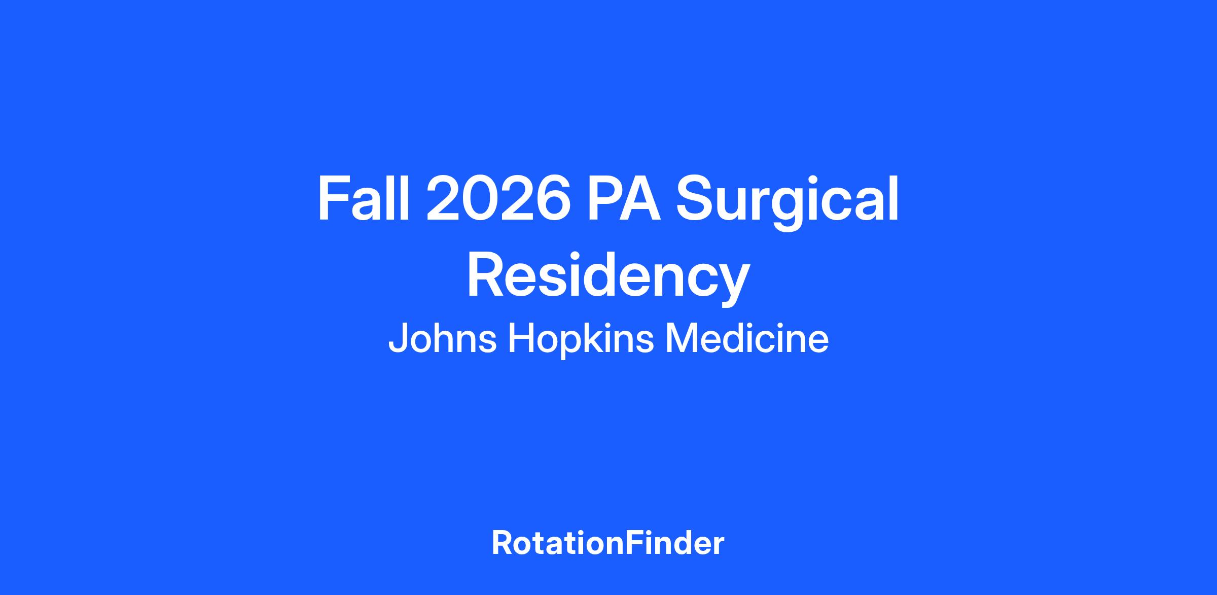 The Surgical Physician Assistant (PA) residency Fall of 2026 will provide a dynamic and hands on training experience on the surgical floors, ICU, clinics and operating rooms. Over the course of the year, residents can expect to have time divided between patient management (~75%) and direct surgical responsibilities (~25%). PA residents will receive didactic, clinical and laboratory education throughout the year. PA residents will rotate through selected core rotations that may include Surgical Oncology/GI, Thoracic, Vascular, Plastics, Trauma and Cardiac Surgery. A one-month rotation through a surgical ICU will be provided as well as an additional elective surgical rotations at a JHH affiliated hospital. When on rotations, PA residents will be working within a team to perform history and physical, make preliminary diagnosis for review by physician and issue diagnostic orders. PA residents will gain additional knowledge and skills such as surgical assist skills, EKG interpretation, wound care management, and removal of surgical drains. More details regarding the JHH PA Surgical Residency can be found on the surgical PA residency website.
