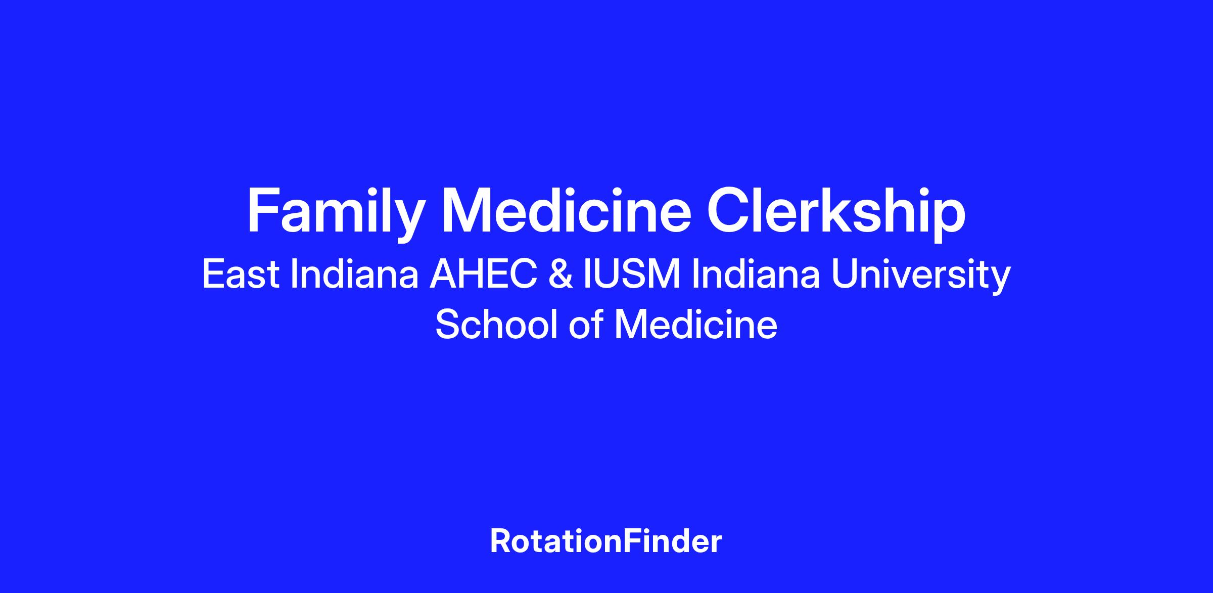 If you are an IUSM student who has been assigned to an East Indiana AHEC family medicine preceptor site, be on the lookout for an email from jeff.hartz@eiahec.org with rotation details approximately 6 weeks before your rotation start date. You are always welcome to reach out early with questions!