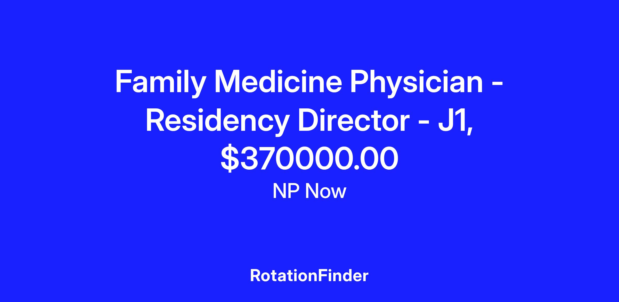 Family Medicine Physician - Residency Director - J1, $370000.00