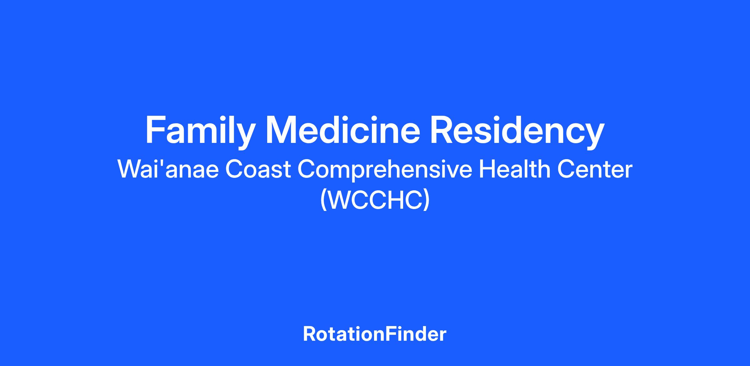 Aloha mai kākou and e komo mai (greetings to all and welcome) to the Wai'anae Coast Comprehensive Health Center's (WCCHC) Family Medicine Residency Program! We are the first Federally Qualified Health Center (FQHC)-based residency program in the state of Hawai'i! WCCHC is the largest FQHC on the island of O'ahu and provides primary care to the people of the Wai'anae Coast (Mākaha, Wai'anae, Lualualei, Nānākuli), Kapolei, Ewa Beach, and Waipahu communities. The residency clinic is based out of the beautiful James and Abigail Campbell Clinic in Nānākuli. Our 3-3-3 residency program began on July 1, 2025. Our residents spend time throughout the WCCHC clinic system, including our stand-alone emergency department in Māʻili, and do required inpatient rotations at our affiliated hospitals within the Queen’s Medical Centers at Manamana and West O‘ahu.