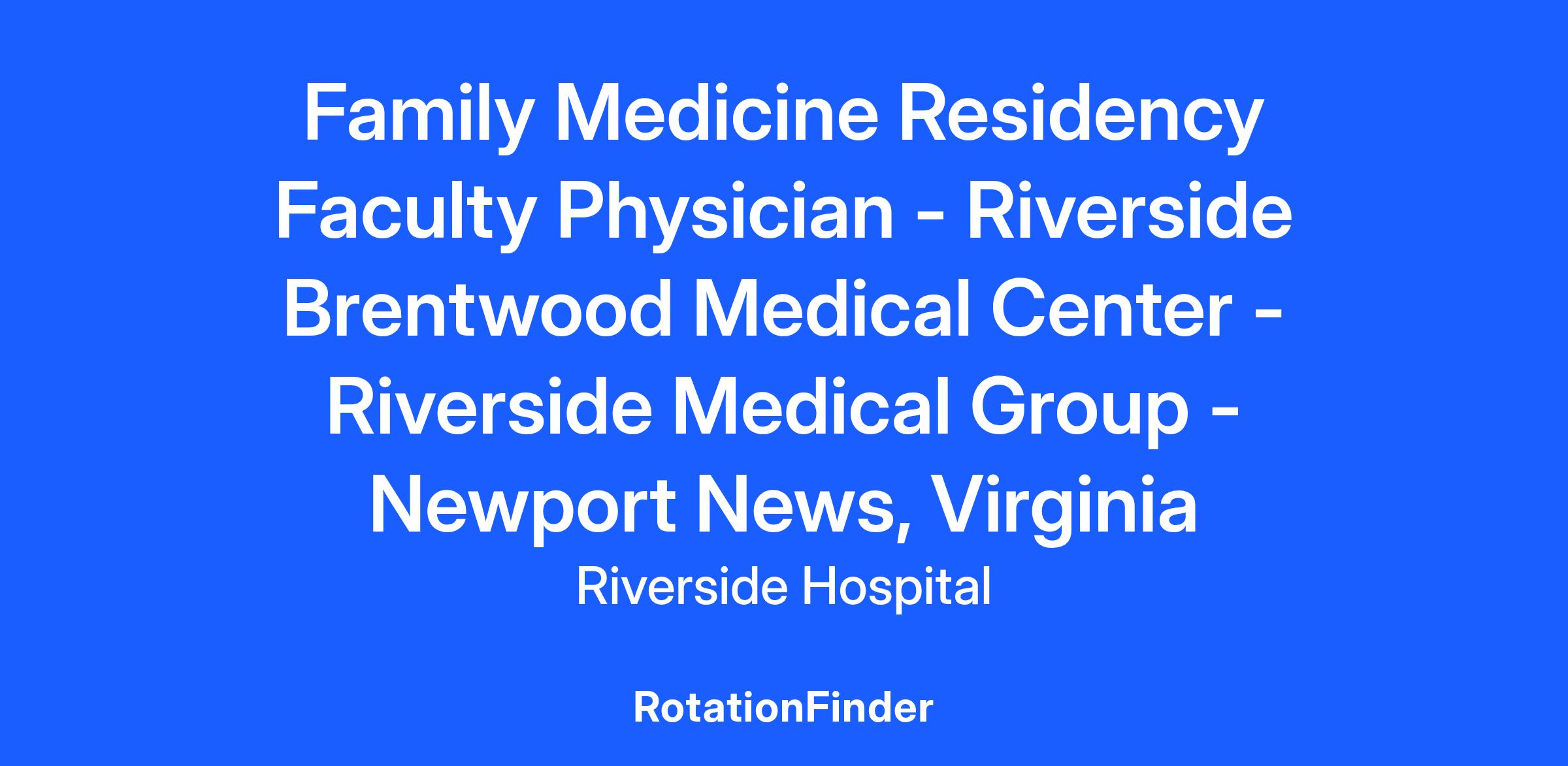 Riverside Medical Group is currently seeking a labor pool Riverside faculty Physician to join our team at Riverside Brentwood/VCU Family Medicine Residency located in Newport News, Virginia.