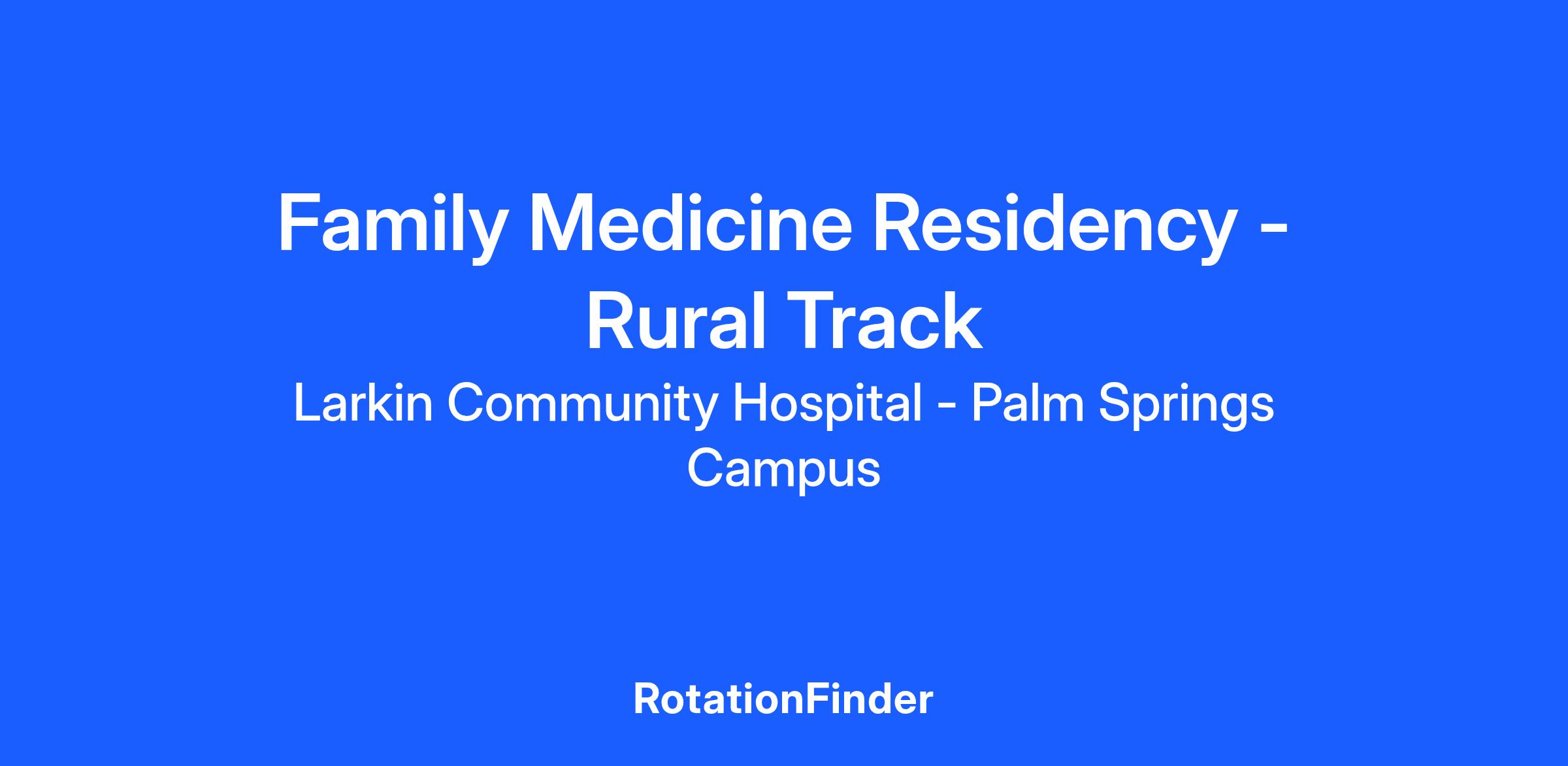The Family Medicine Rural Track Residency at Larkin Community Hospital is the first ACGME-accredited program in the State of Florida to receive the ACGME Rural Track Program Designation. This three-year pathway is designed to train compassionate, adaptable, and community-focused physicians who are prepared to practice full-spectrum family medicine in rural and underserved areas.