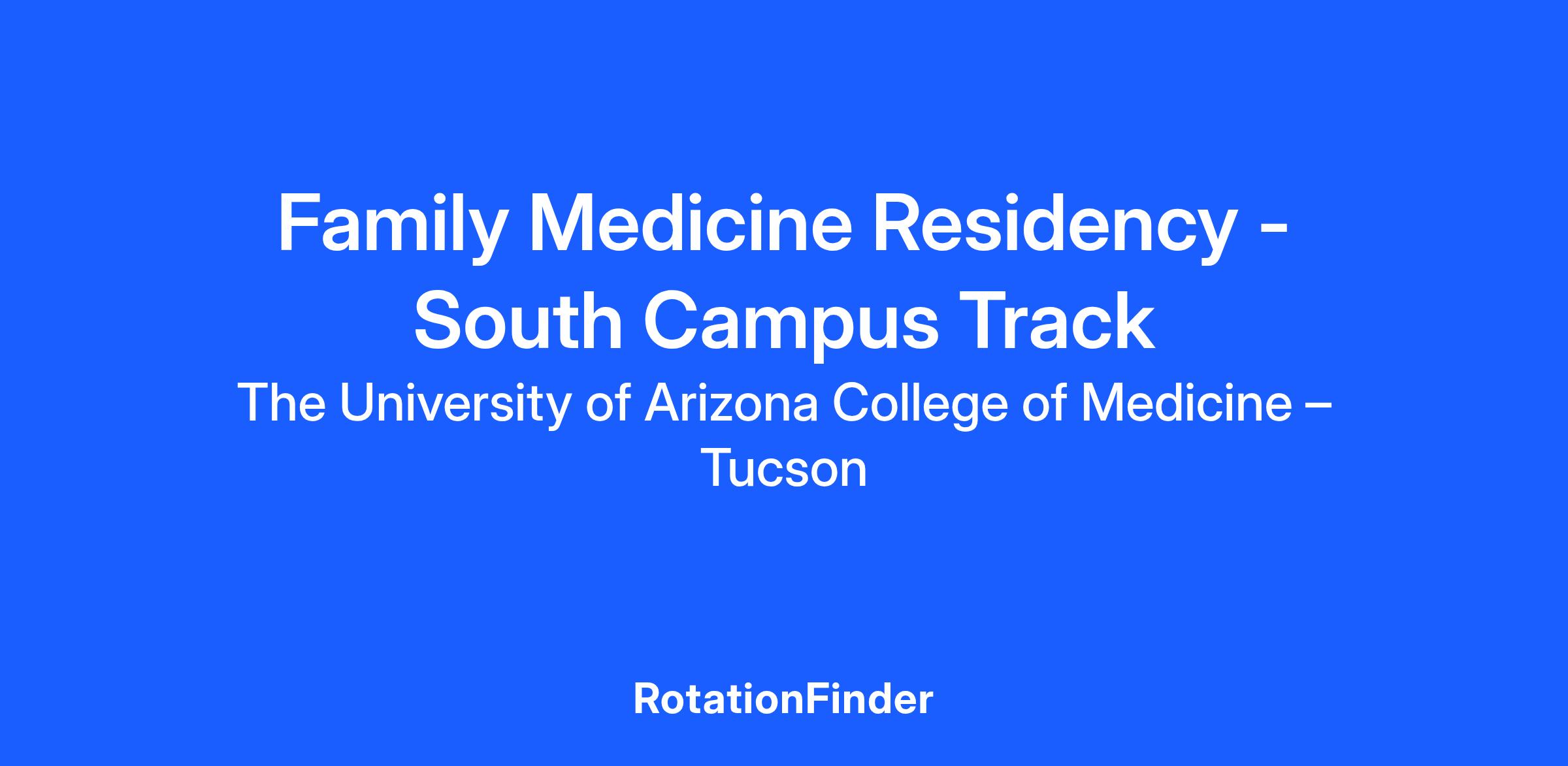 ERAS ID: University of Arizona College of Medicine – Tucson Program Family Med South Campus Track