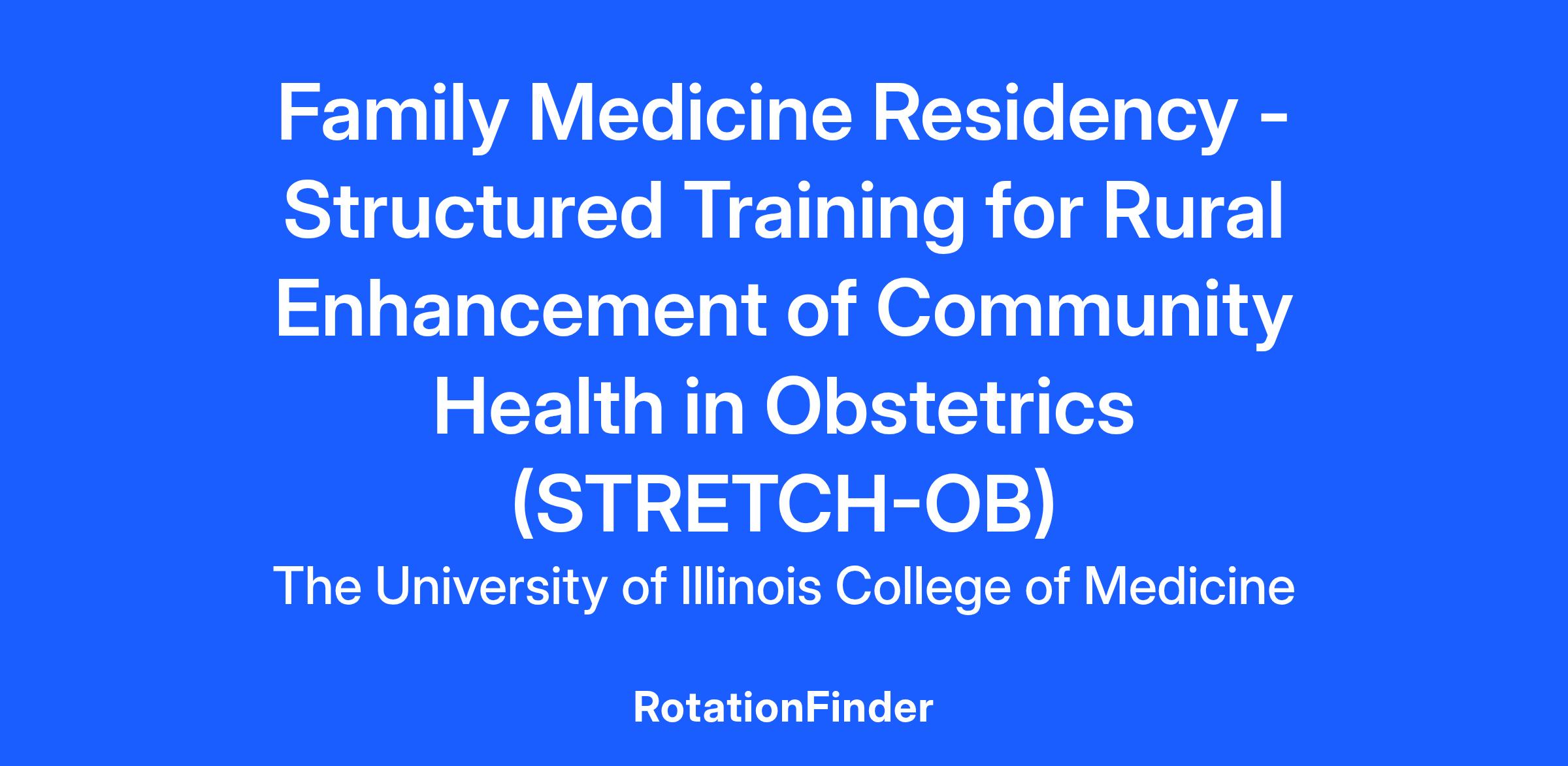 To apply to the STRETCH-OB program, first complete the application through AAMC ERAS system indicating your interest in the University of Illinois College of Medicine Rockford Family Medicine Residency Program (#2268120C0). As part of the AAMC ERAS application, you should submit one letter of recommendation from your Department of Family Medicine, one letter from your Department of Obstetrics & Gynecology, and a third supporting letter from Family Medicine or Obstetrics.