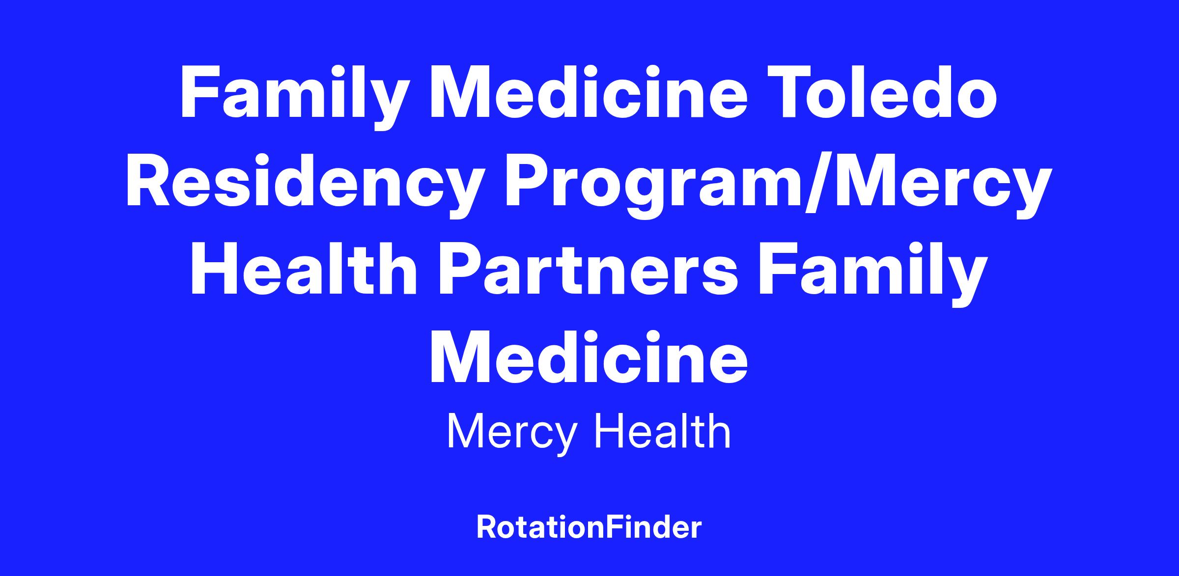 Program Name: Mercy Health — Family Medicine Toledo Residency Program/Mercy Health Partners Family Medicine Residency Program