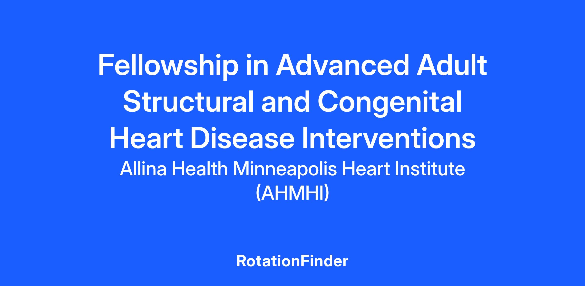 The Fellowship in Advanced Structural Heart Disease (SHD) Interventions at the Allina Health Minneapolis Heart Institute (AHMHI) is designed to train qualified applicants in various aspects of percutaneous valvular and other non-valvular, adult and congenital structural interventions. Graduates of our 1-year training program are expected to be fully proficient in performing all aspects of structural interventional techniques.