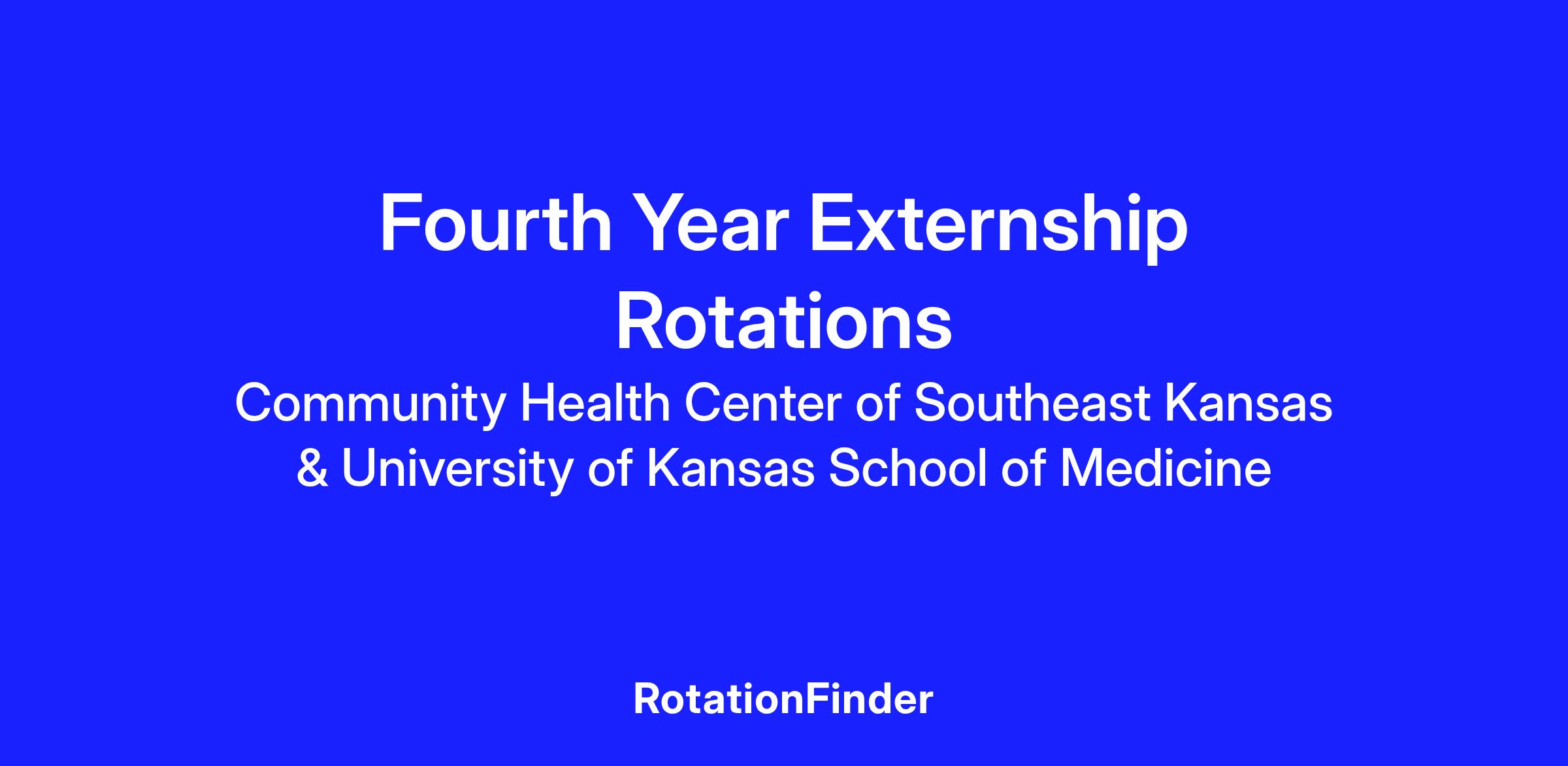 KU-CHC/SEK Rural Family Medicine Residency, ACGME ID # 1201900001KU CHC/SEK Rural Family Medicine Residency is excited to offer Fourth Year Externship Rotations to interested and qualified students. This four-week rotation will give student direct insight into the residency program, time with our residents and faculty, as well as a well-rounded rural family medicine experience at both CHC/SEK and Mercy Hospital in Pittsburg, KS. Please review the basic requirements before beginning the application process.