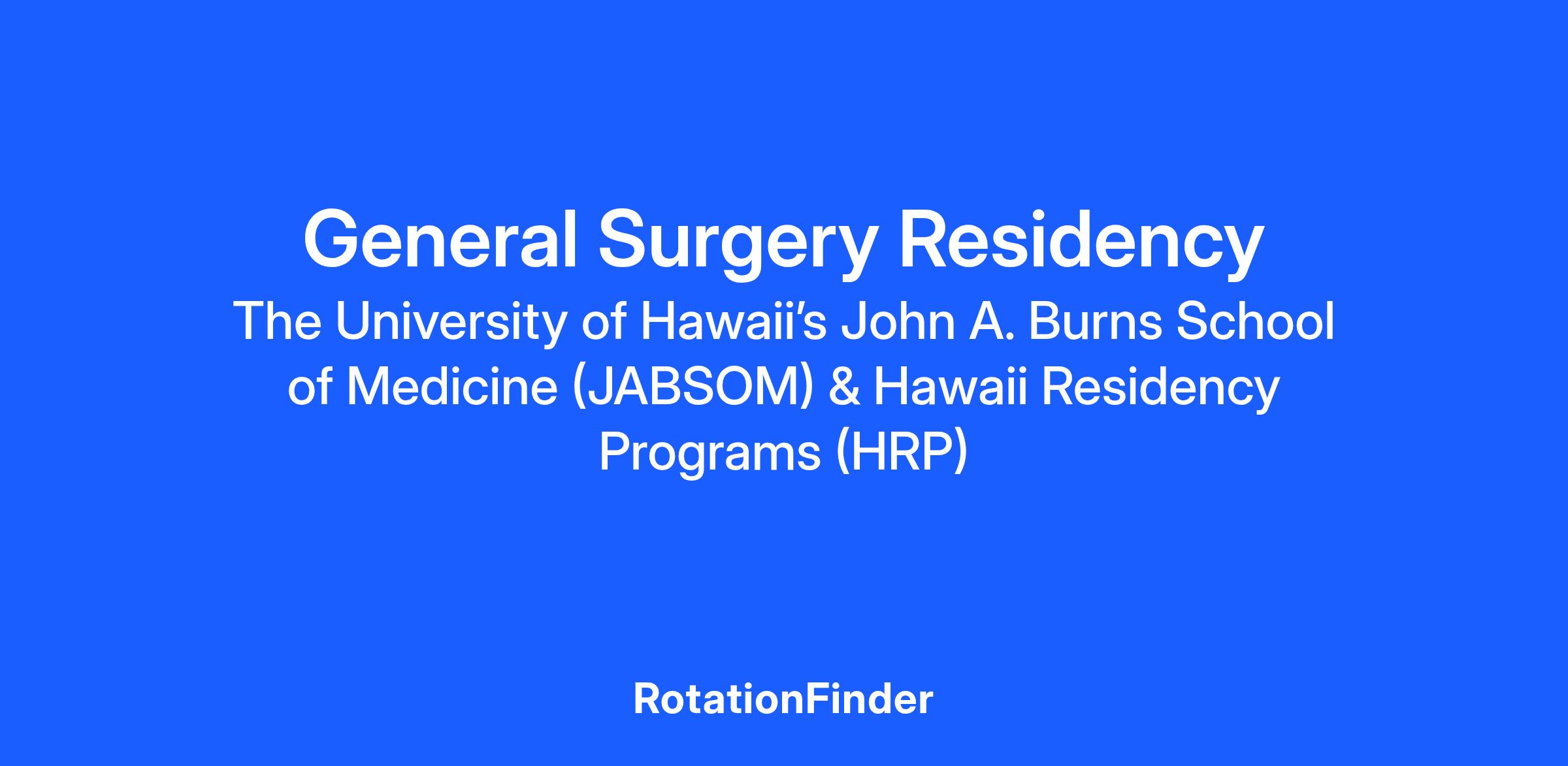 The University of Hawai’i Surgical Residency Program is an approved five-year general surgery training program accredited by the ACGME. The Program operates in an integrated and affiliated community hospital system in which patients are treated by University Faculty and University-affiliated, Private Surgical Attending Physicians with Clinical Faculty appointments. The training of all Surgical Residents takes place primarily in four Honolulu community hospitals.