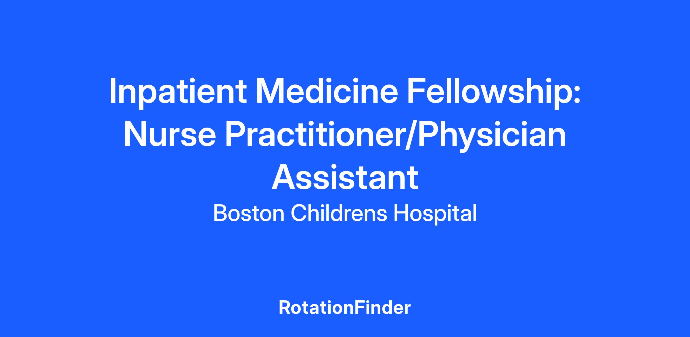 Position Summary The Inpatient Medicine Advanced Practice Provider (APP) Fellowship will provide Nurse Practitioners and Physician Assistants with a broad experience across inpatient medical settings. Clinical practice will be focused in the Renal, End-Stage Renal, Immunology, Endocrine, Adolescent Medicine, GI/Hepatology and Admission Team settings. This full-time, 6-month APP Fellowship will build competency by means of hands–on direct care experiences, didactic classes, simulation and presentations. The APP Fellows will train with physicians and APPs, and integrate with members of the multidisciplinary team. APP Fellows will be supported by a core team of MD/NP/PA leaders, APP liaisons, preceptors, and mentors. Clinical time will include night/weekend rotation.