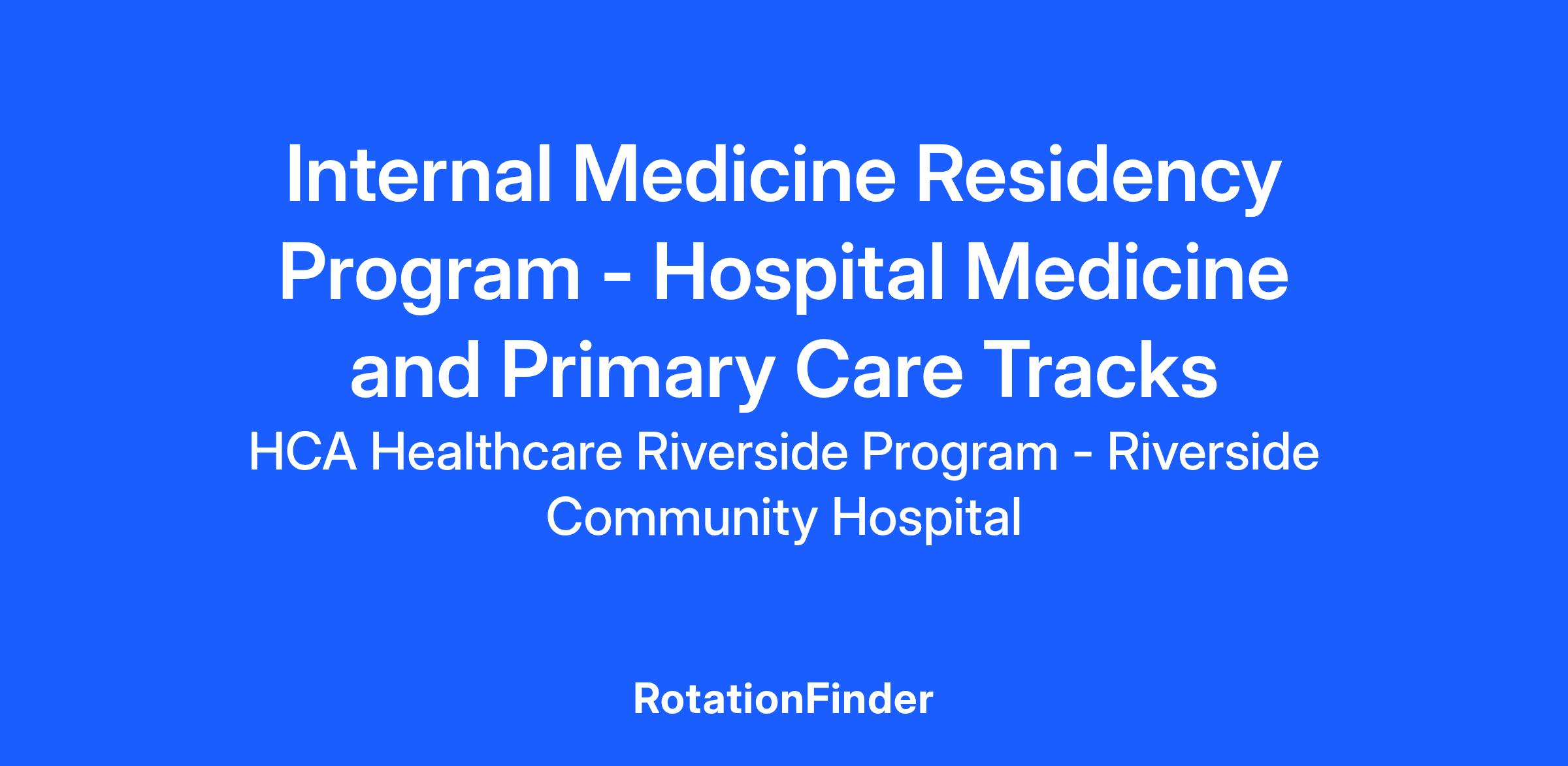The Riverside Internal Medicine Residency program’s mission is to develop the next generation of physicians and physician leaders. As a part of HCA Healthcare, we are driven by a single mission: “Above all else, we are committed to the care and improvement of human life”.