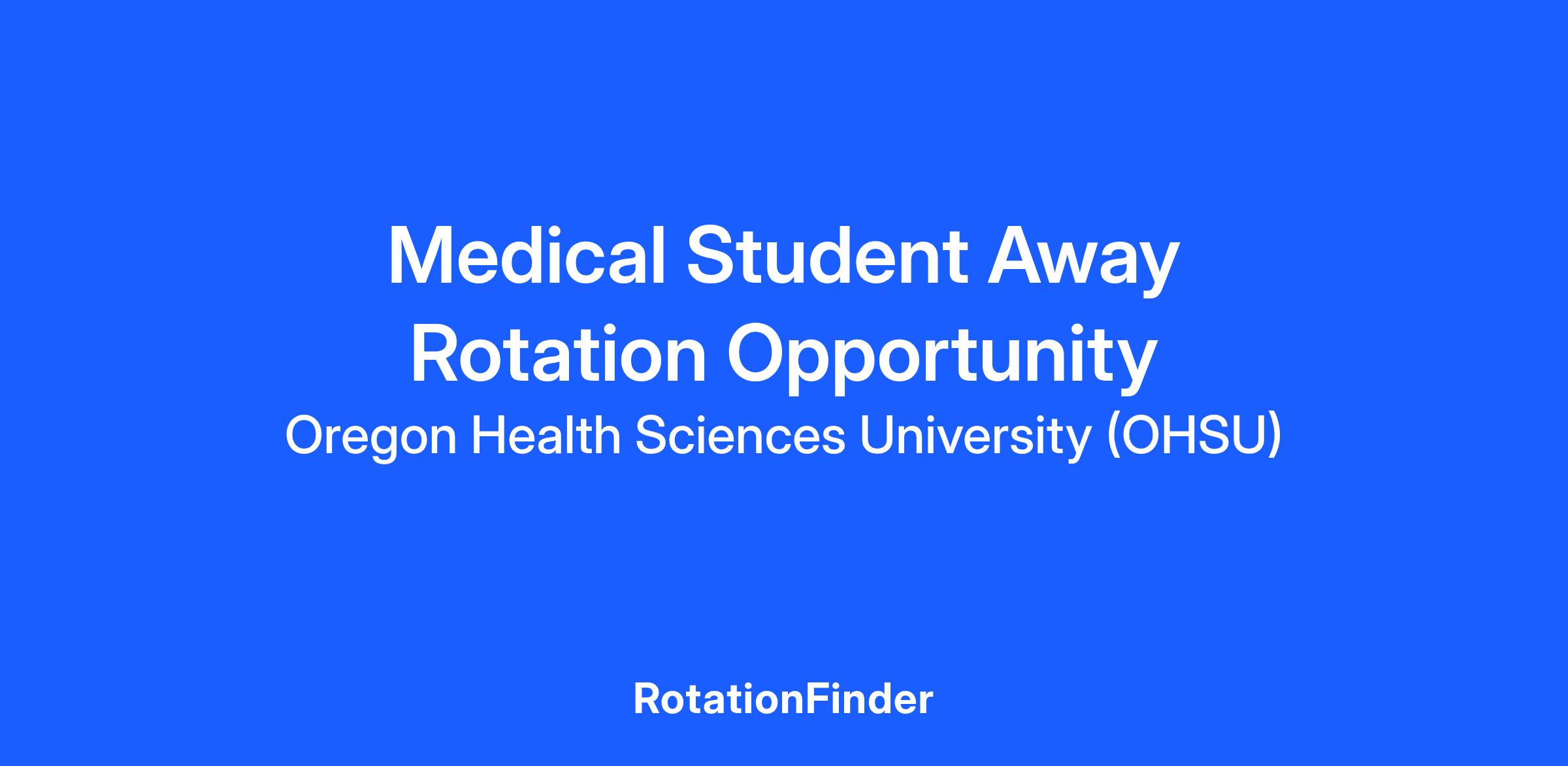 Oregon Health & Science University (OHSU) utilizes the AAMC Visiting Student Learning Opportunities (VSLO, previously known as VSAS) to receive visiting MD and DO student applications. For more information regarding VSLO, please visit the VSLO website or contact 202-478-9878.