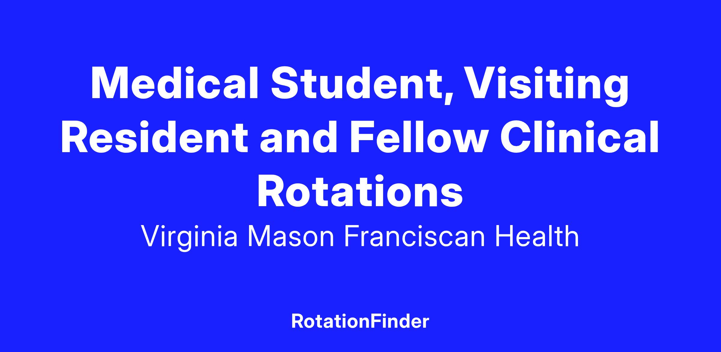 - Applications will be reviewed starting May 1. Please note that you have not been accepted for an elective until you receive a letter of approval from Virginia Mason Franciscan Health Graduate Medical Education through VSLO.