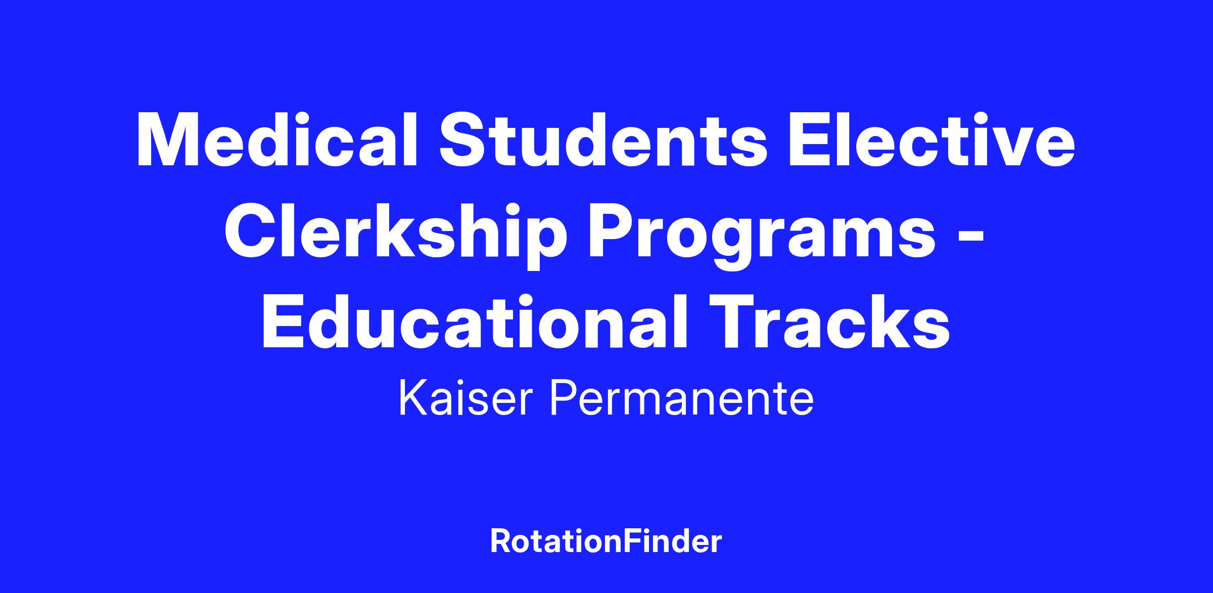 Medical Students Elective Clerkship Programs - Educational Tracks