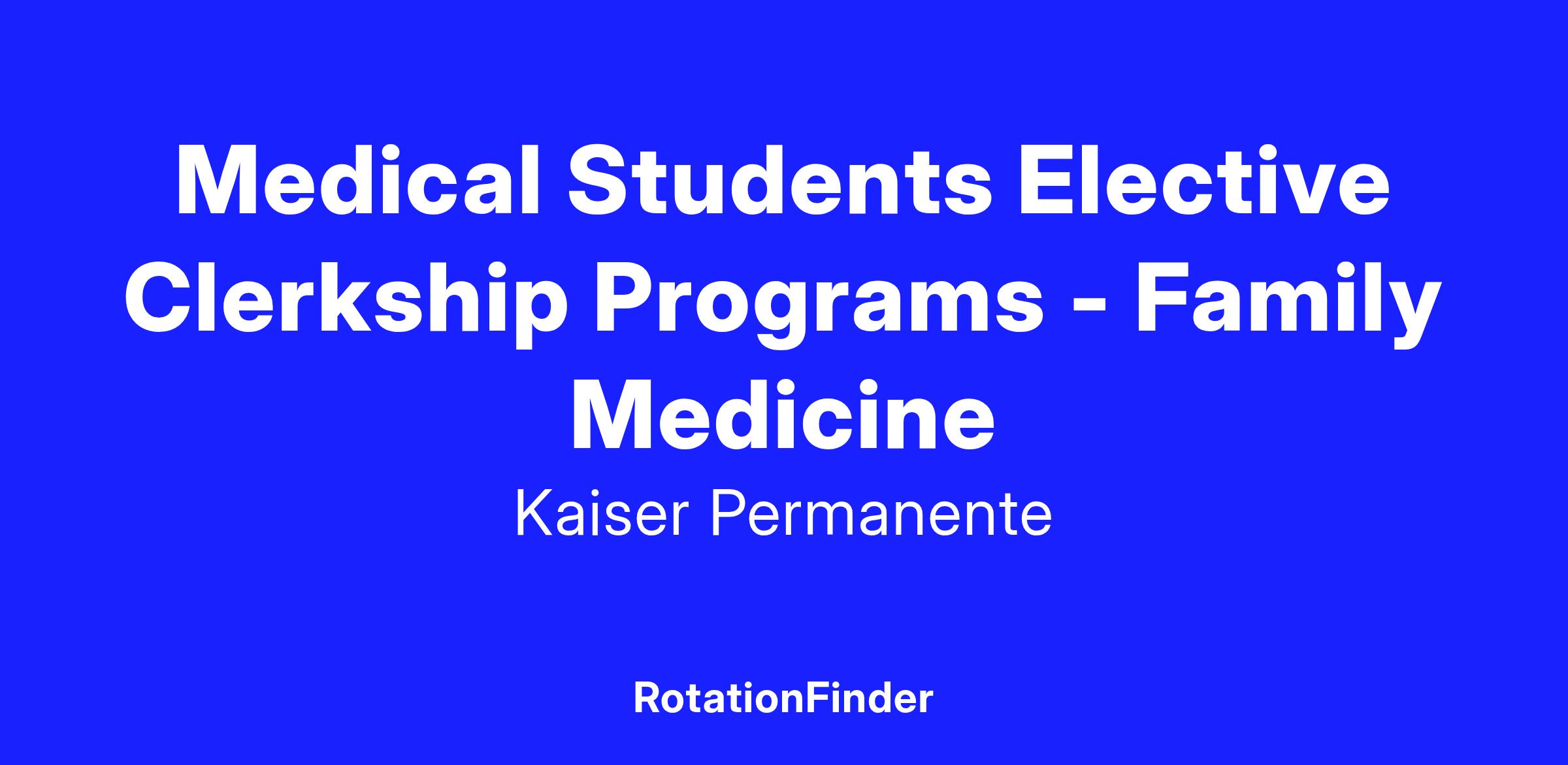 Medical Students Elective Clerkship Programs - Family Medicine