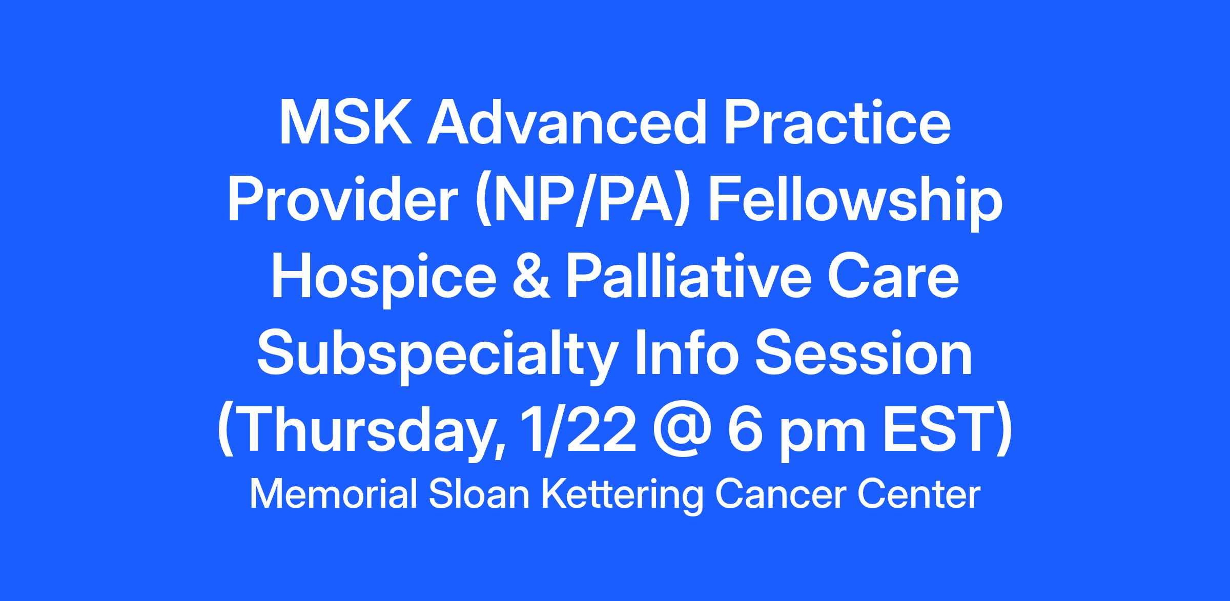 Memorial Sloan Kettering Advanced Practice Provider Hospice and Palliative Care Fellowship