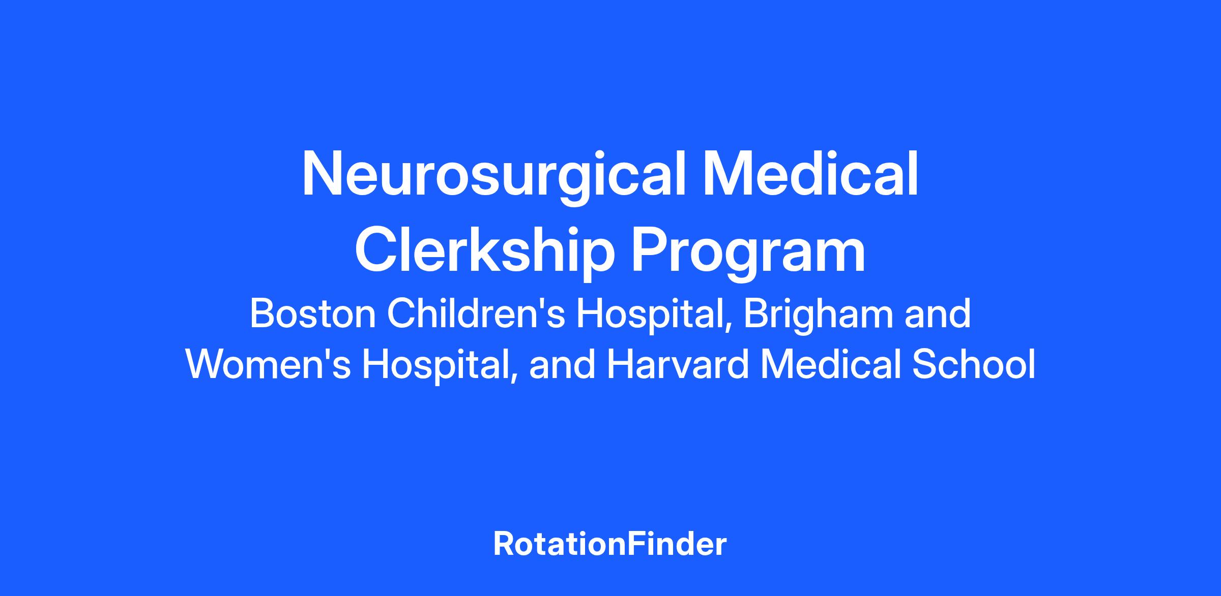 The Neurosurgical Service at Boston Children's Hospital, Brigham and Women's Hospital and Harvard Medical School offers a clerkship in neurosurgery for third and fourth year medical students, as well as students coming from medical schools abroad.