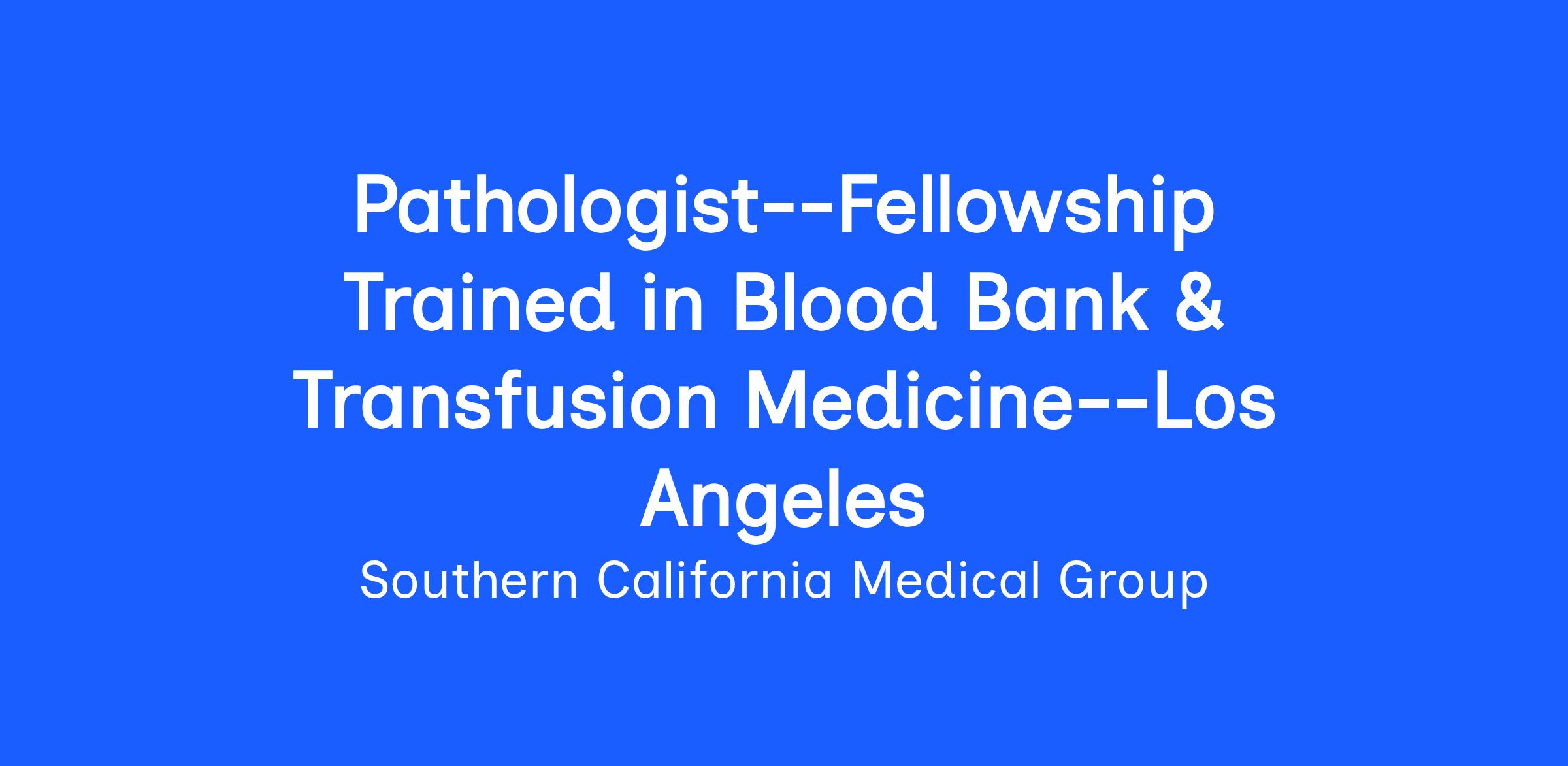 Kaiser-Permanente Los Angeles Medical Center is seeking an AP/CP board-certified pathologist with additional training and board certification in Blood Banking & Transfusion Medicine, to oversee a large clinical laboratory and Blood Bank in a tertiary/quaternary hospital with a busy cardiovascular surgical service.