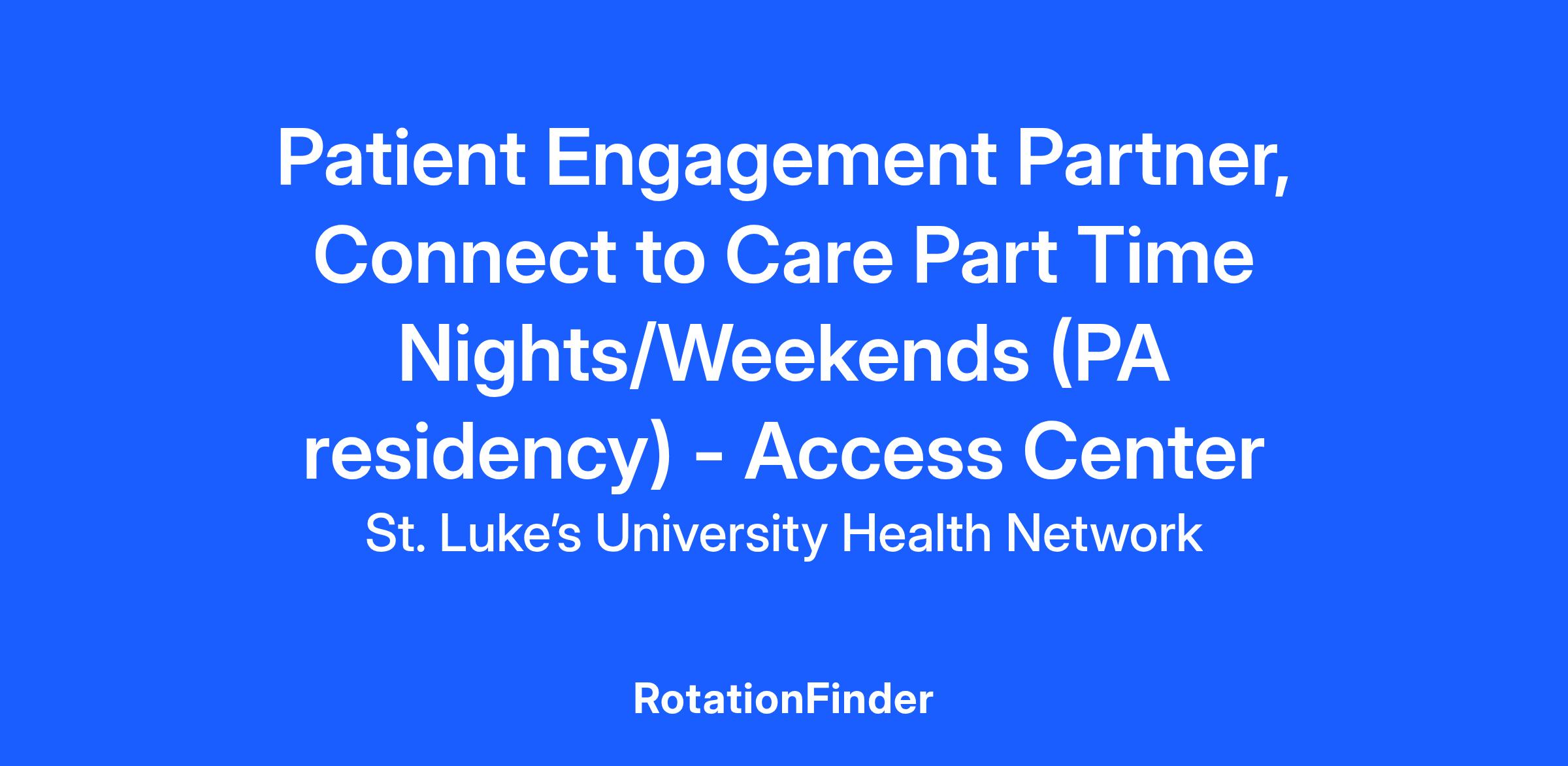 Patient Engagement Partner, Connect to Care Part Time Nights/Weekends (PA residency) - Access Center