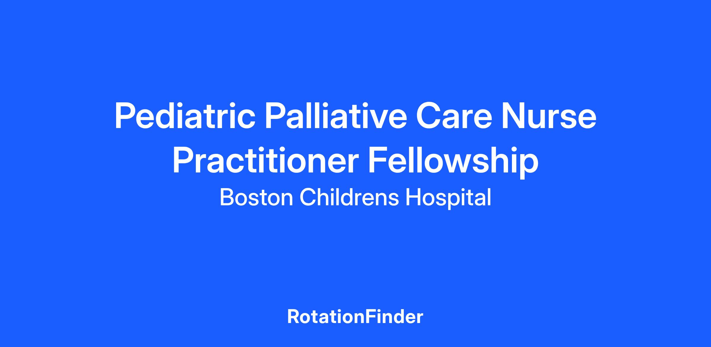 PACT (Pediatric Advanced Care Team) Nurse Practitioner Fellowship PACT offers a full-time, 12-month, Pediatric Nurse Practitioner Fellowship. The pediatric nurse practitioner fellow will train alongside two physician fellows and one social work fellow in this distinctive interprofessional program. The fellowship includes mentored clinical supervision on PACT across settings (inpatient, outpatient, community, bereavement) in the care of children with serious illness and their families in the domains of communication, pain and symptom management, psychosocial assessment and management, advance care planning, interdisciplinary collaboration, and various delivery models in palliative care. This fellowship is designed to conform to the Hospice and Palliative Nurses Association's Standards for Clinical Practicum in Palliative Nursing for Practicing Professional Nurses, Scope and Standards of Practice, and Competencies for Advanced Practice Hospice and Palliative Care Nurses. What to expect The pediatric and adult interprofessional palliative care fellows attend educational/training sessions together throughout the year. The learning activities (and supervision) are intertwined with the clinical work. The fellowship starts in July with intensive summer didactics that focus on the fundamentals of palliative care (e.g. a core curriculum of symptom management, communication, advance care planning, working on inter-professional team). In the fall, fellows have half-day didactic sessions monthly in addition to clinical work/academic projects distributed across the fellowship year. Qualified candidates will have:- Master of Science in Nursing from an accredited program.