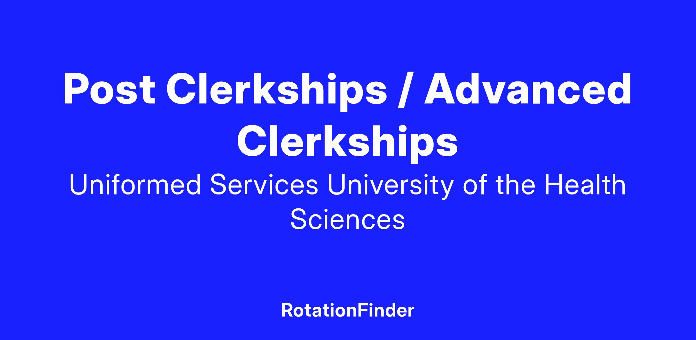 Involvement in clinical clerkships begins in January of Year 2 and continues through the end of a student’s time at USU. Rotations in the core clerkships are completed in three 15-week blocks from January of Year 2 to December of Year 3. Following completion of the core clerkship year, students have a dedicated six-week Step 1 study block. Completion of the Step 1 examination is followed by participation in the “Bench to Bedside and Beyond” phase of the curriculum, which includes training in Advanced Life Support (ALS), Advanced Trauma Life Support (ATLS) and advanced academics focusing on the integration of basic science and clinical medicine. Advanced Clinical Rotations begin in the early spring of Year 3 and end a few weeks before graduation. These are 12 blocks of four-week rotations with three required rotations (Anesthesia, Emergency Medicine, and Neurology). The remainder are student-selected based upon future career plans and are designed in coordination with the guidance from the Office for Student Affairs.