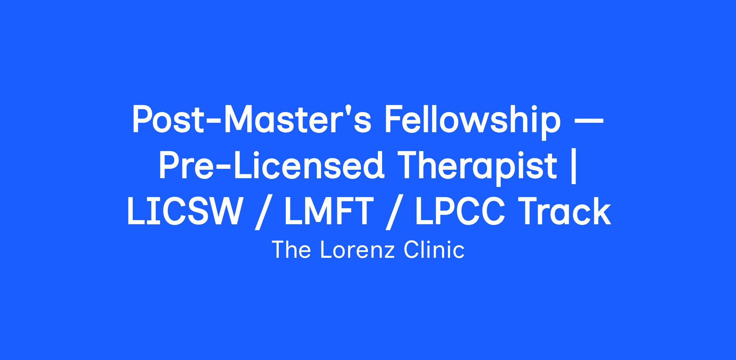 Learn more: lorenzclinic.com/join-us/careers/post-masters-fellowship/