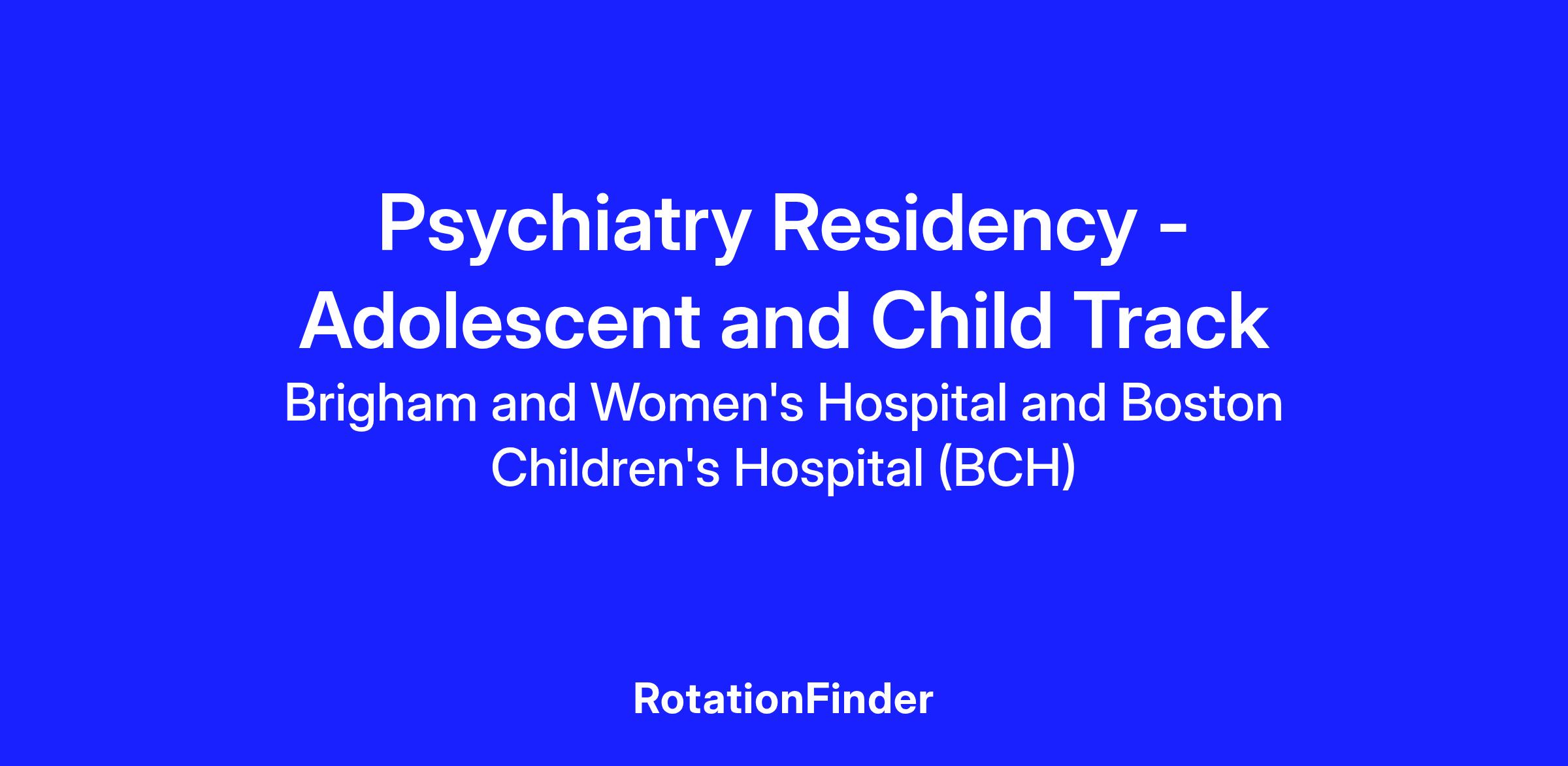 The Child Track is a collaborative program between Brigham and Women's Hospital and Boston Children's Hospital (BCH). Residents on the Child Track spend the majority of their PGY1 medicine and neurology months at BCH on the inpatient pediatrics service, the emergency department, and the pediatric neurology inpatient service. Child Track residents pursue a variety of clinical electives including inpatient eating disorders, developmental disorders, outpatient young adult mental health clinic, and child psychiatry consultation service. During PGY3 Child Track residents have a primary outpatient continuity clinic at Boston Children's Hospital.