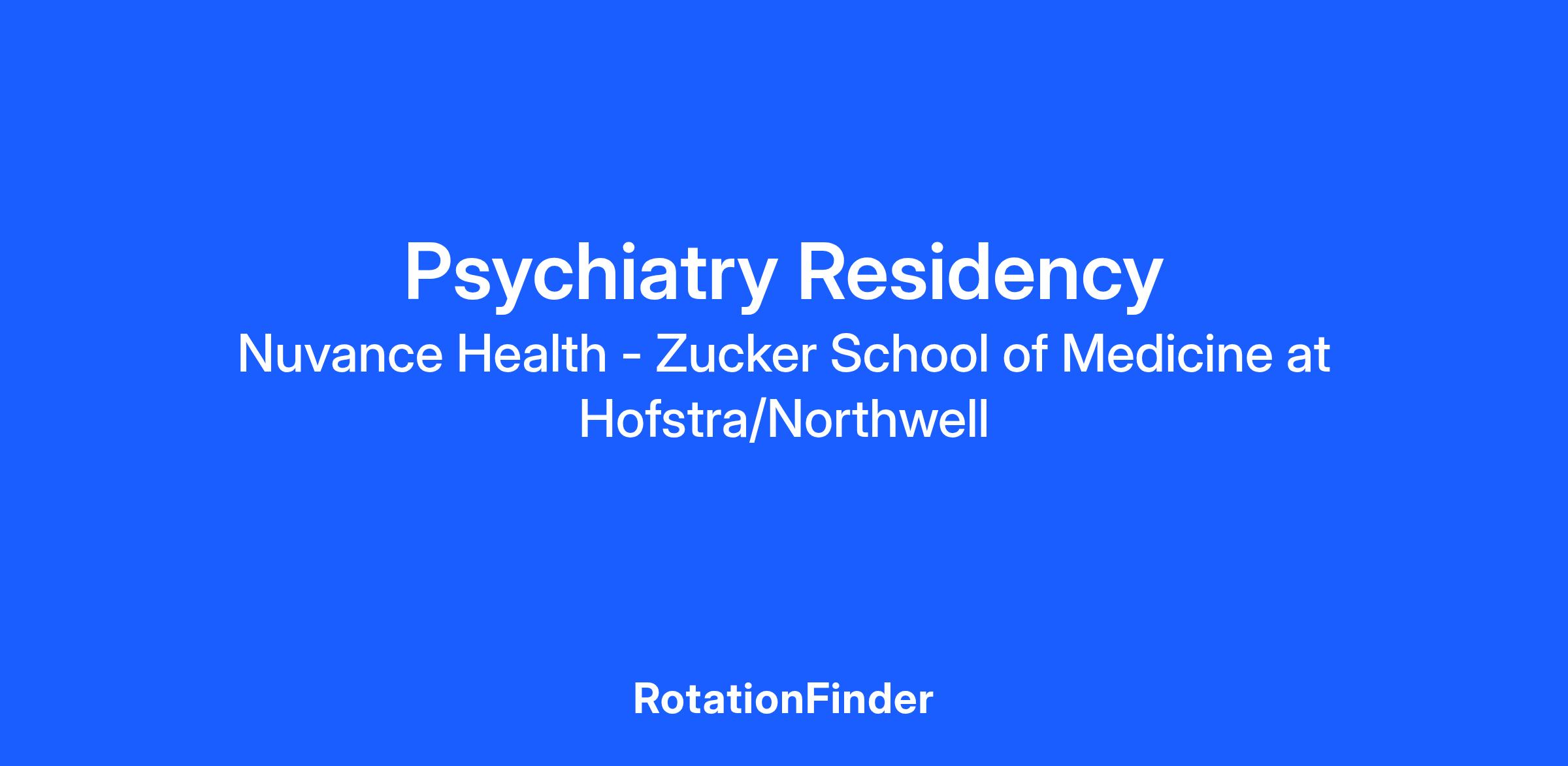 The NZucker School of Medicine at Hofstra/Northwell Psychiatry Residency Program at Putnam Hospital would like to thank you for your interest in applying to our program. We accept all applications through the ERAS and participate annually in the NRMP Match Program. Interviews will be virtual via Thalamus for the 2022-2023 recruitment season.