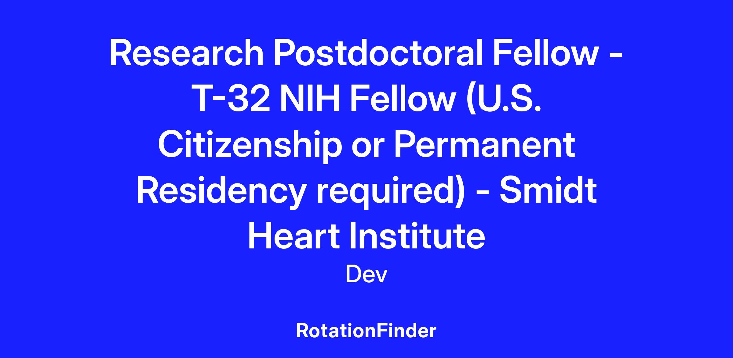 At this time, we can only accept applicants who are U.S. citizens or permanent residents. PhD candidates must also be within three years of receiving their degree, and MD candidates must be within one year of completing their clinical training.