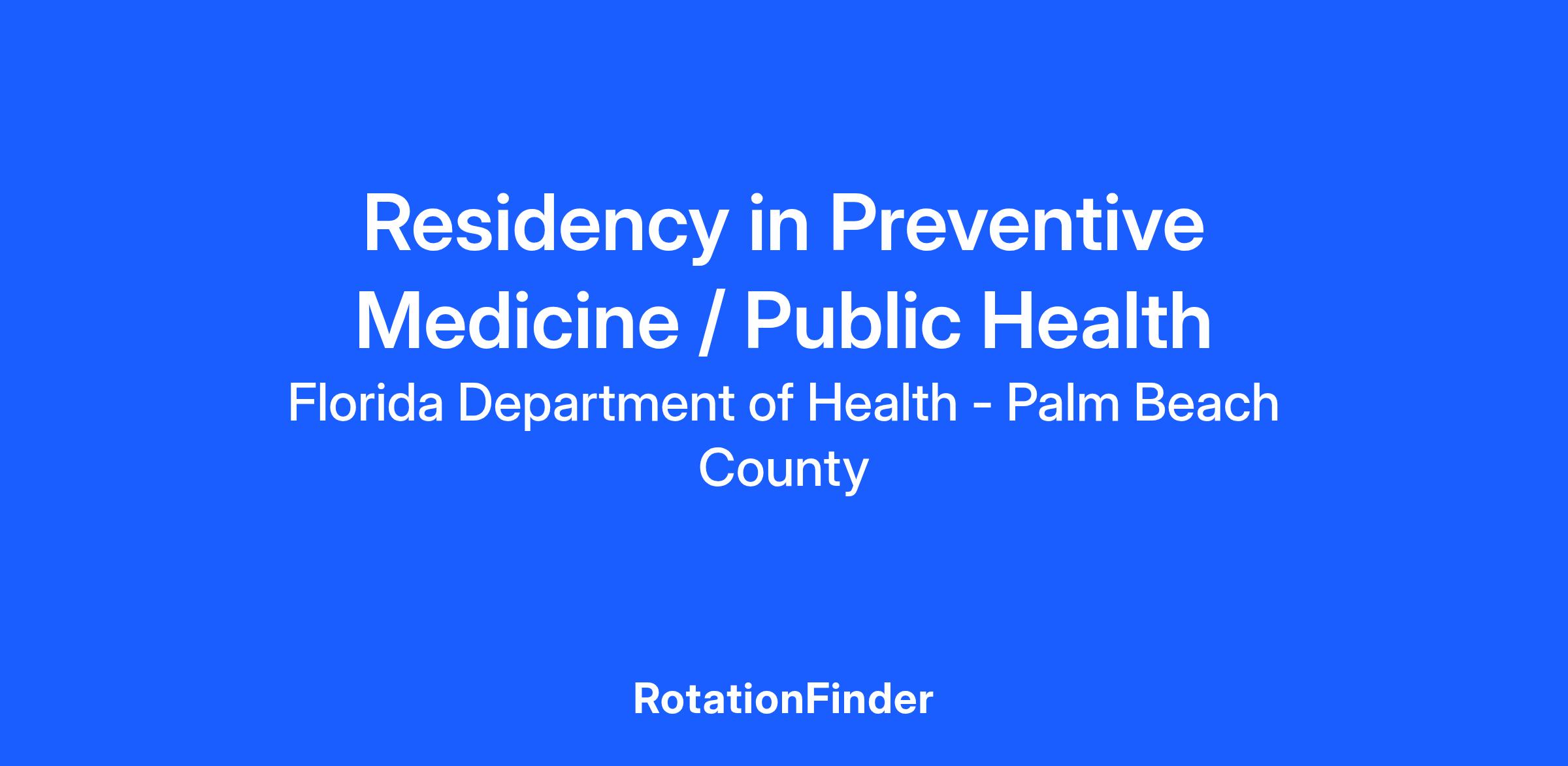 Welcome to the Florida Department of Health-Palm Beach County’s Preventive Medicine/Public Health Residency Program. Throughout the years Palm Beach County has grown from a small seasonal population into a thriving community of over a million people. Like many metropolitan areas, our community is diverse. However, we have a unique viewpoint of being home to many modern technology firms and at the same time, one of the nation’s largest commercial farming communities.