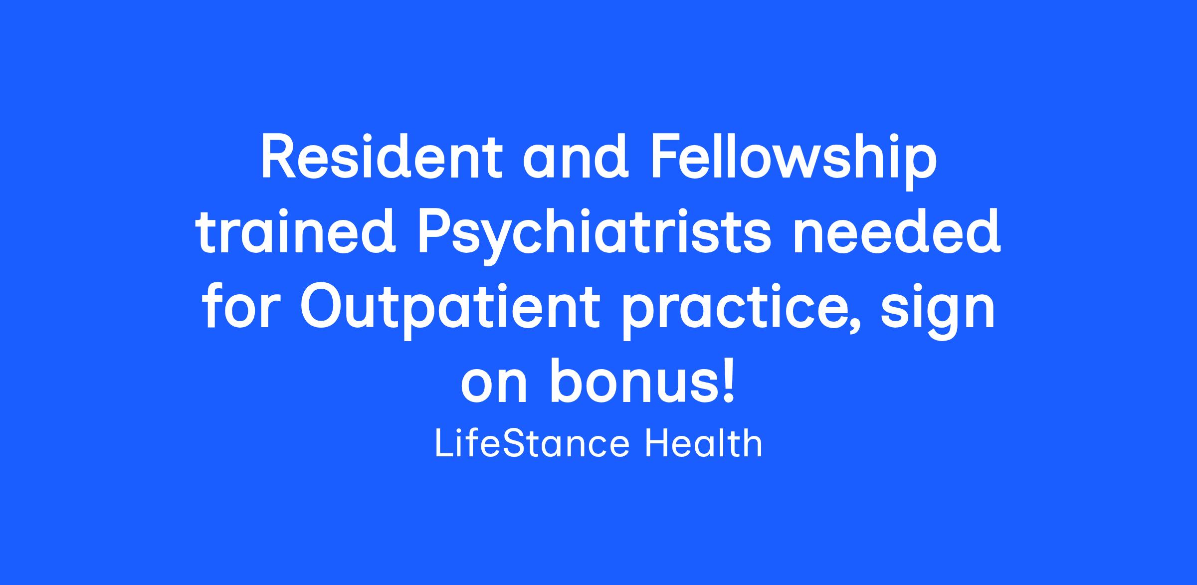 We offer Psychiatrists out of Residency