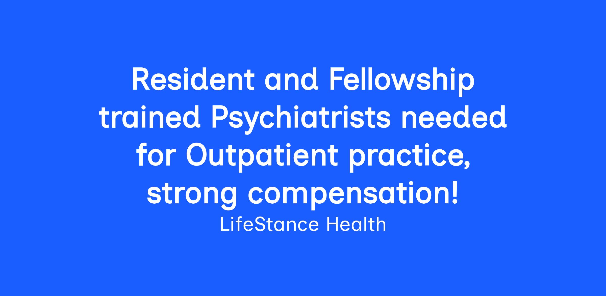 We are actively looking to hire talented Psychiatrists out of Residency in the area, who are passionate about patient care and committed to clinical excellence.