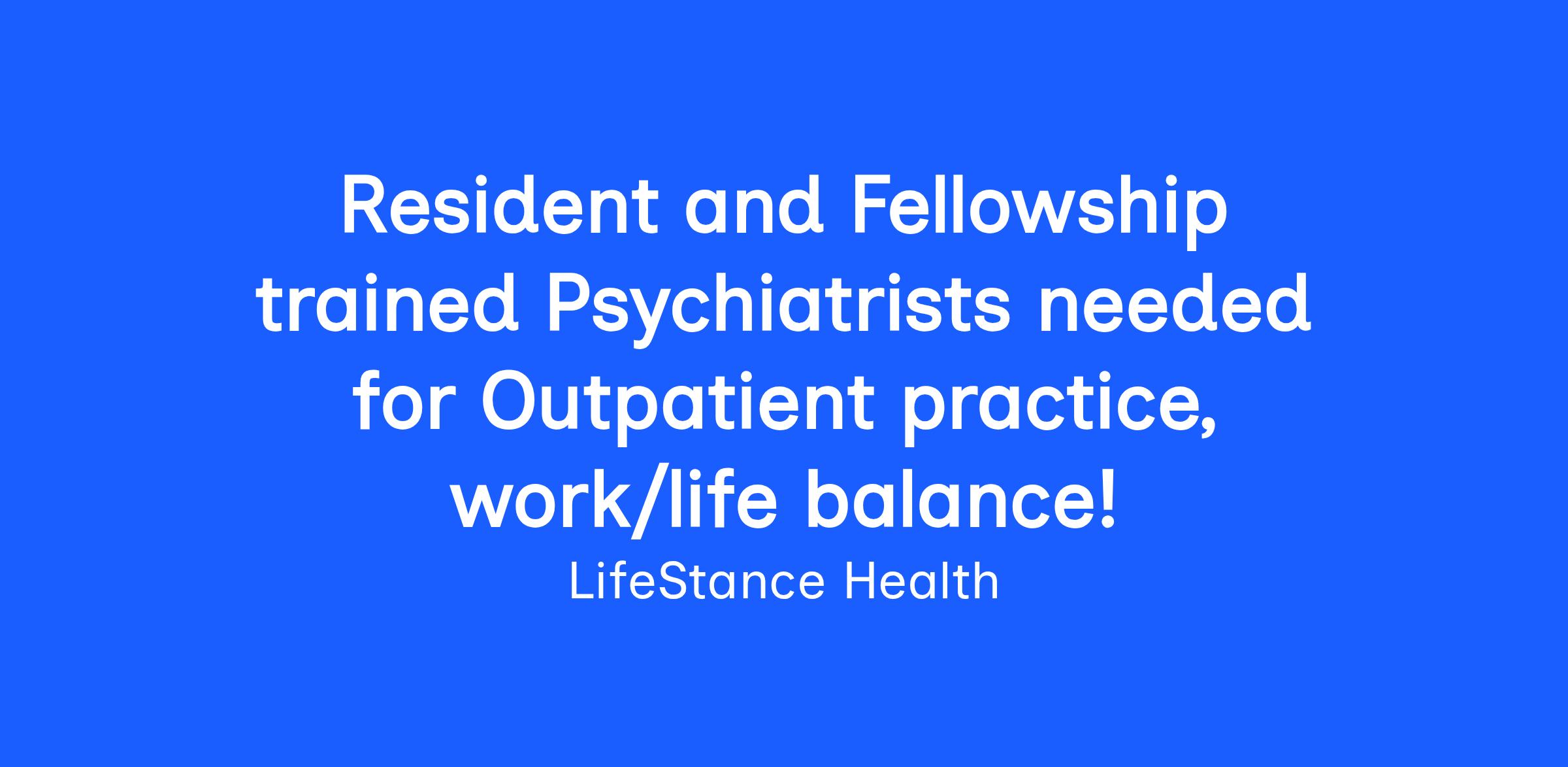 We are actively looking to hire talented Psychiatrists out of Residency in the area, who are passionate about patient care and committed to clinical excellence.