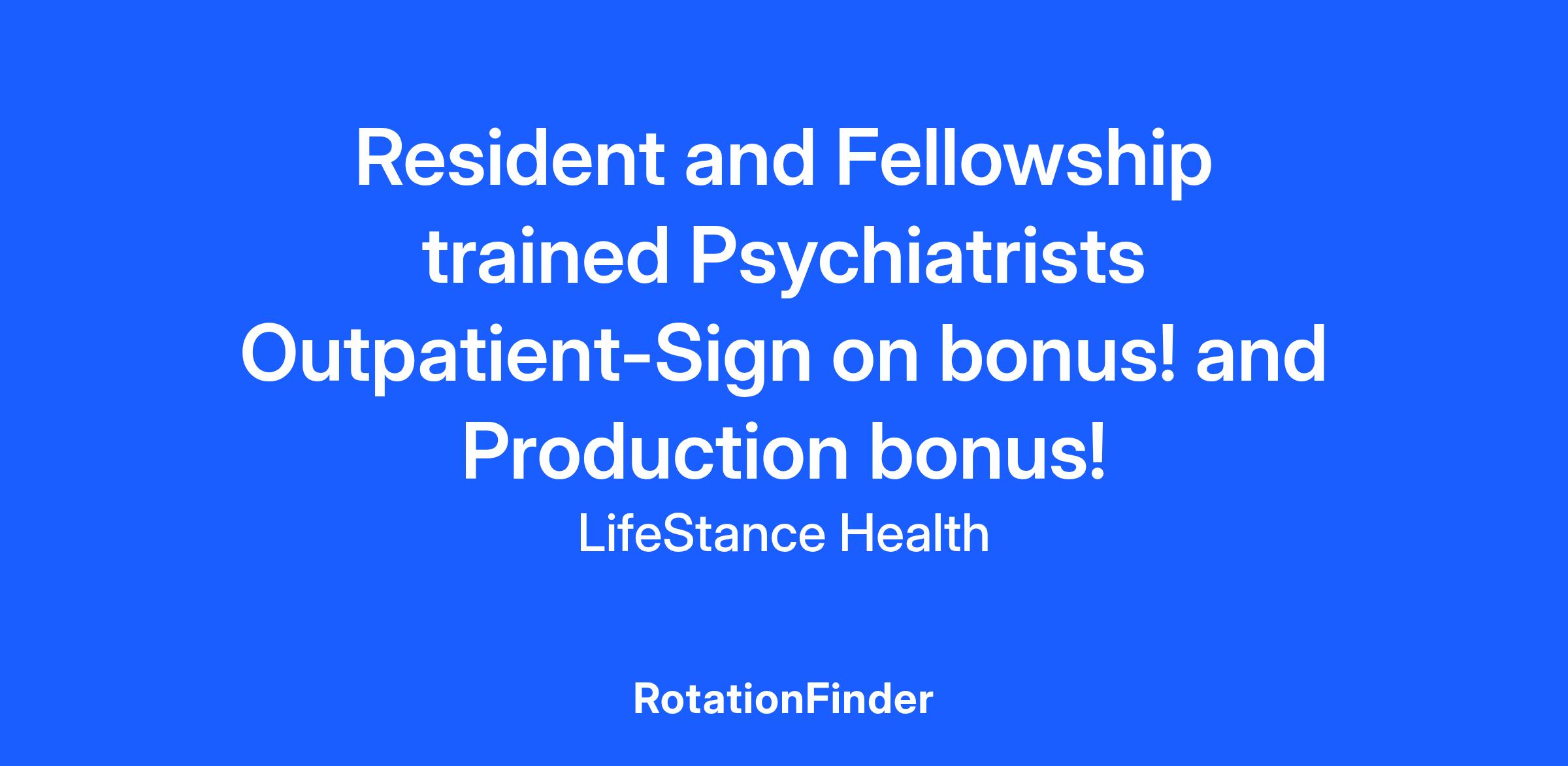 We offer Psychiatrists out of Residency